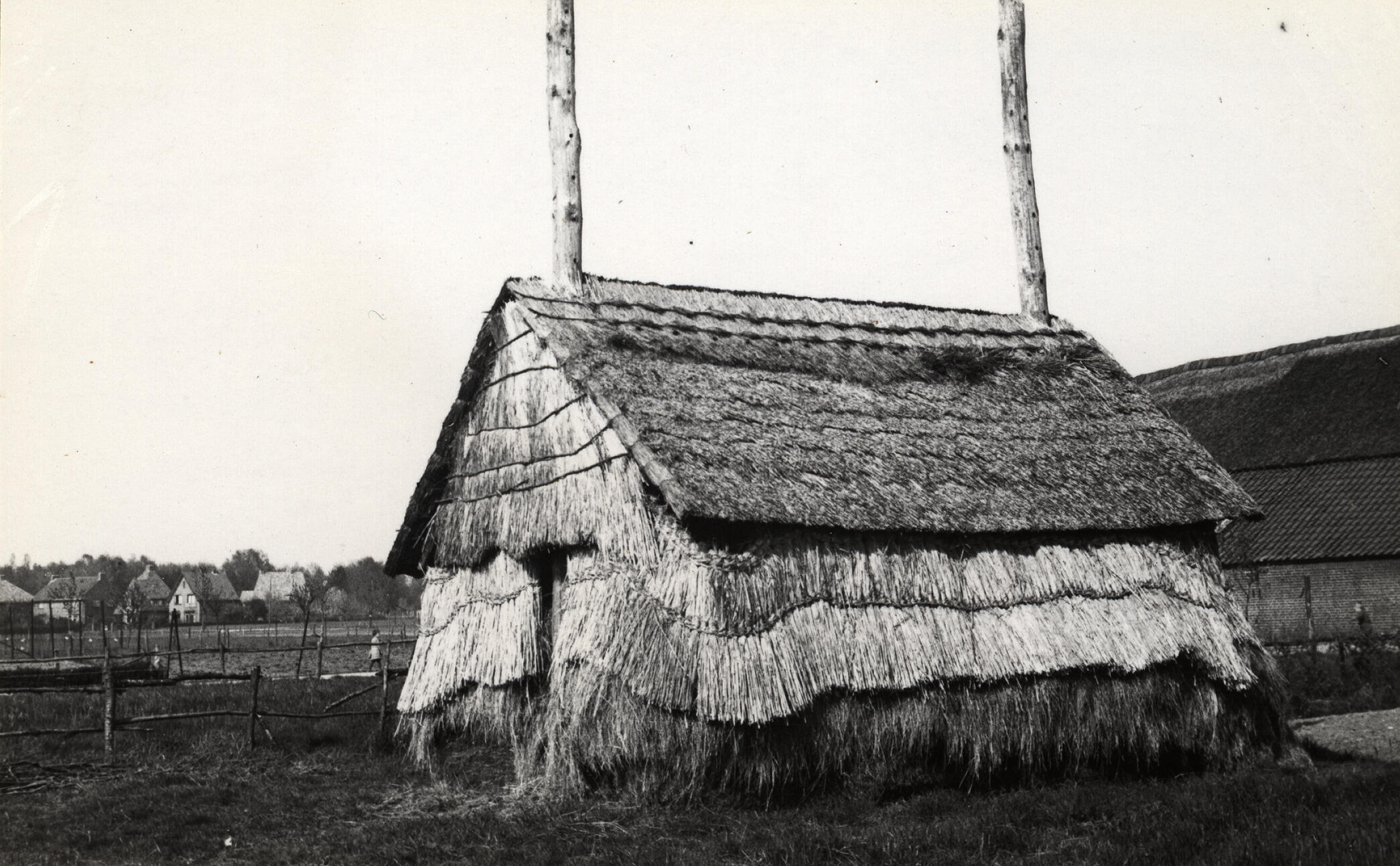 Tweeroedige hooiberg, Wageningen, 1936 (zwart-wit foto)