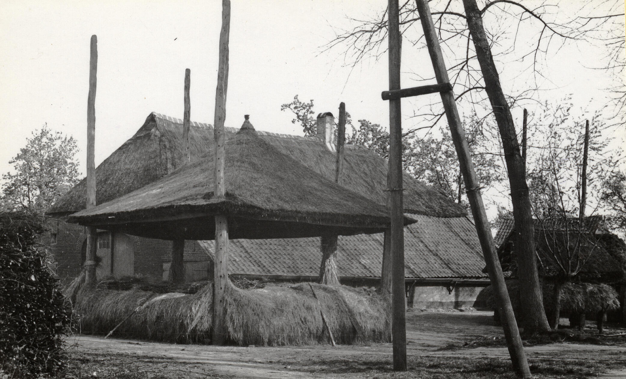 Hooiberg op een erf, Bennekom, 1936 (zwart-wit foto)