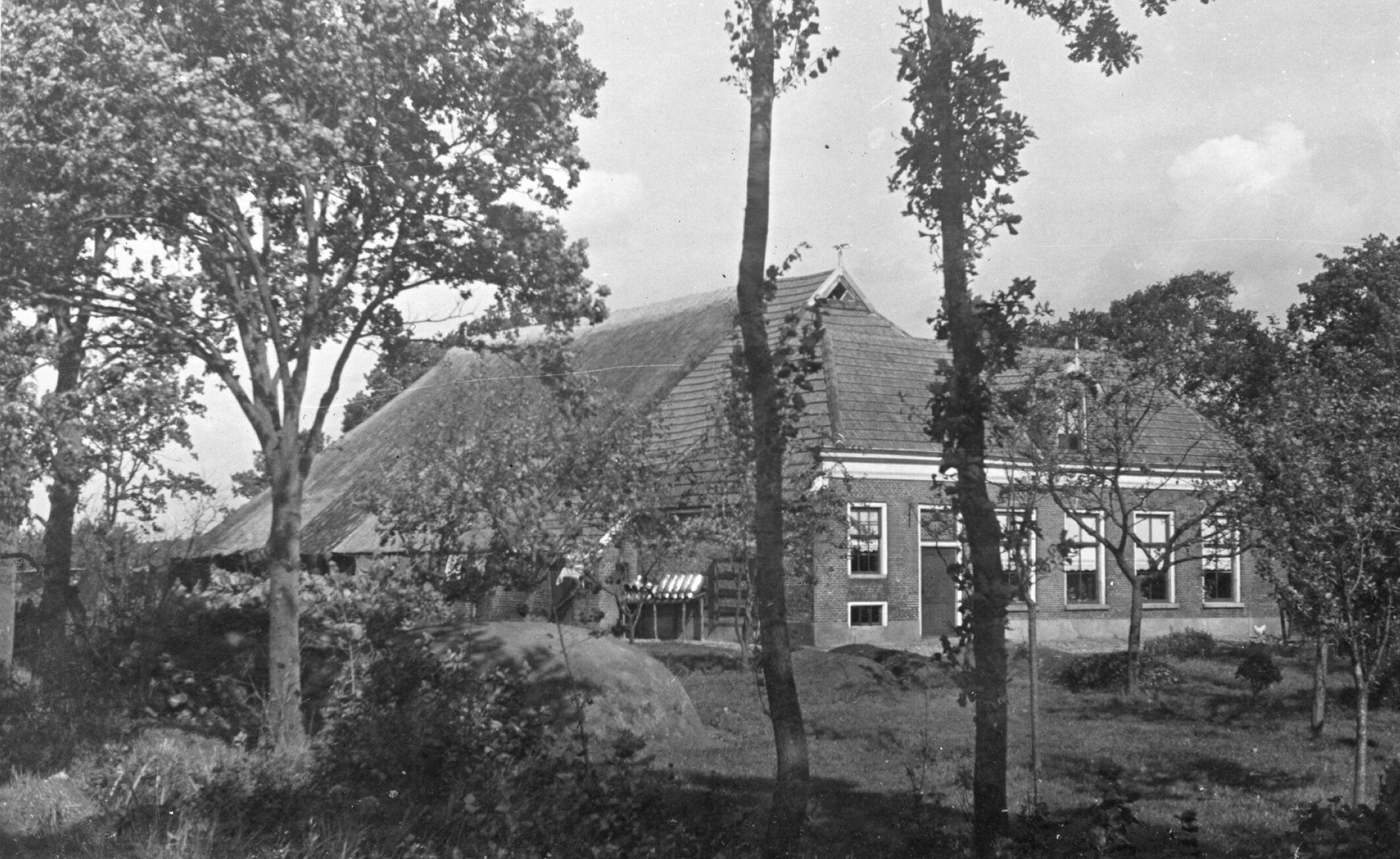 Dwarshuisboerderij, Nijeveen, 1936 (zwart-wit negatief)