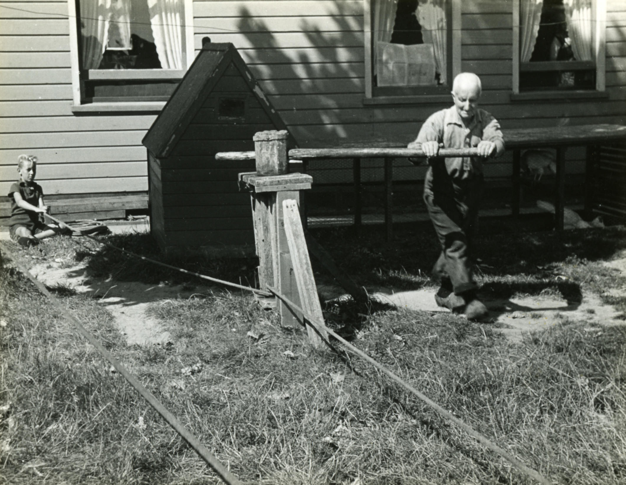 Spil op de scheepswerf, Assendelft, 1947 (zwart-wit foto)