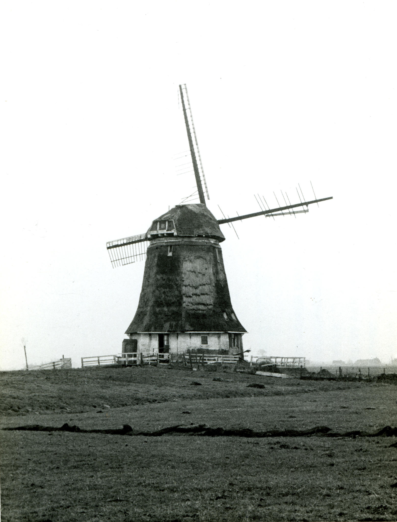 Poldermolen in de Weerepolder bij Lutjewinkel, 1947 (zwart-wit foto)