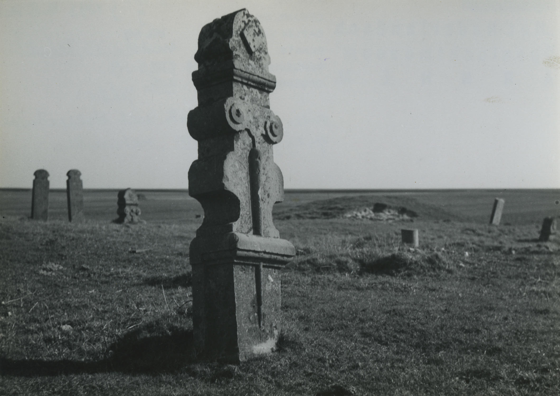 Stoeppaal als grafzerk, Midsland, 1948 (zwart-wit foto)