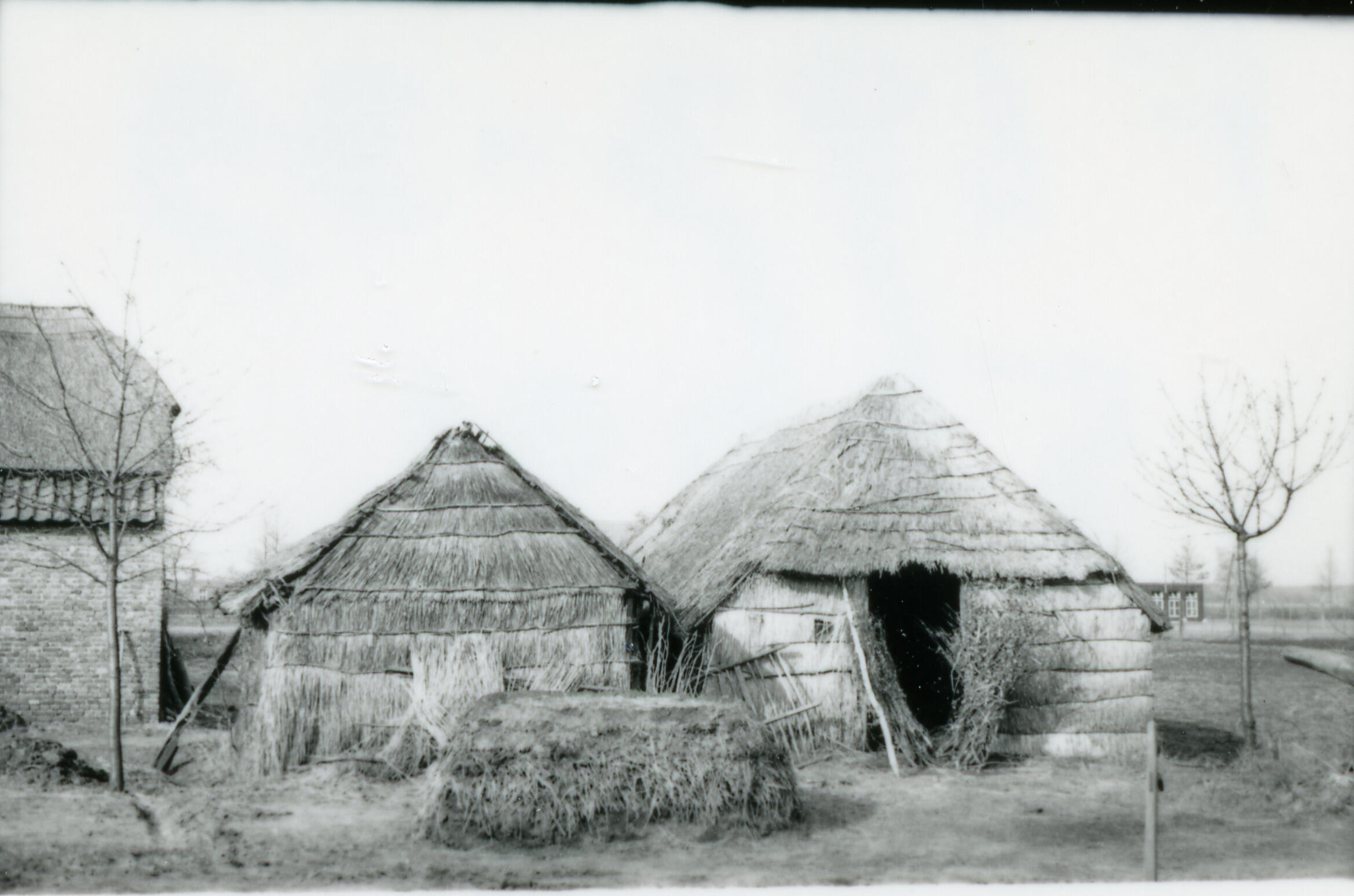 Twee schuren van stro, Deurne, 1939 (zwart-wit foto)