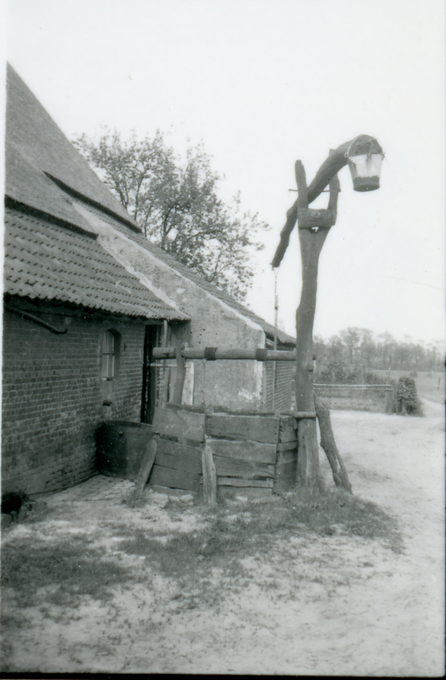 Waterput met een puthaal en een putslinger naast een boerderij in het Brabantse Roond.