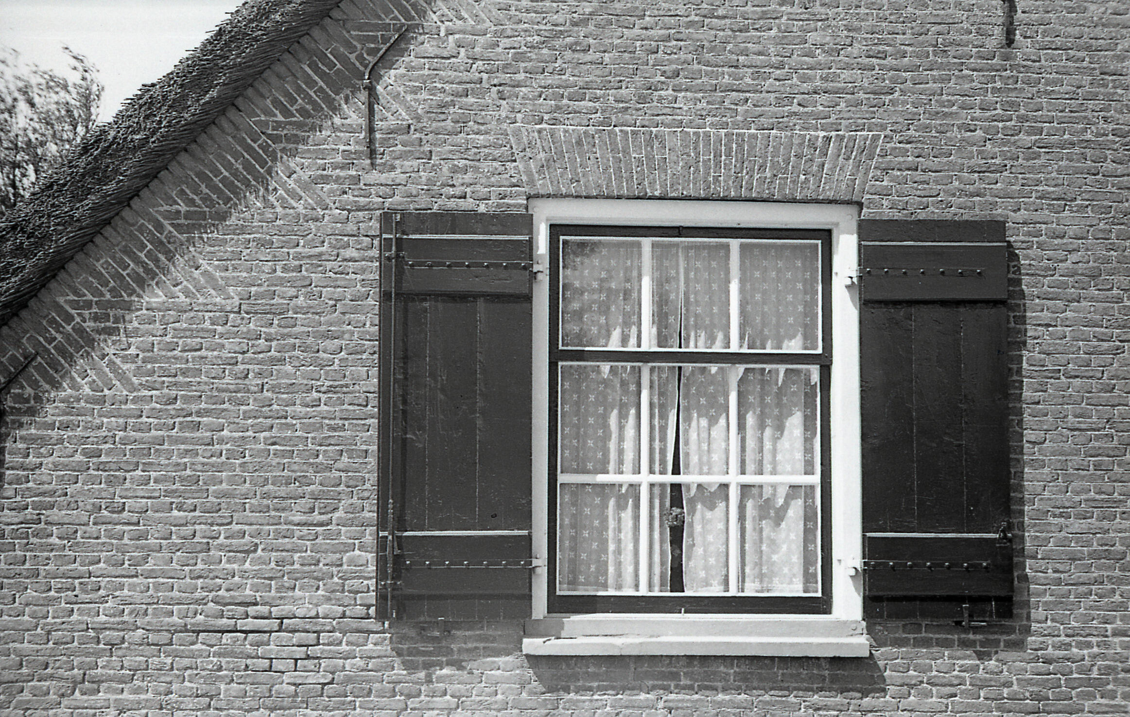 Raam van een boerderij, Giessen-Oudekerk, 1939 (zwart-wit foto)