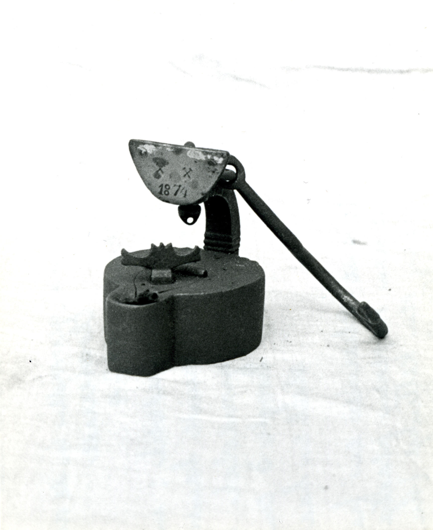 Mijnlamp, gevonden in de oude mijnen van de abdij Kloosterrade. De lamp dateert uit 1874 en is eigendom van het Mijnmuseum in Kerkrade.