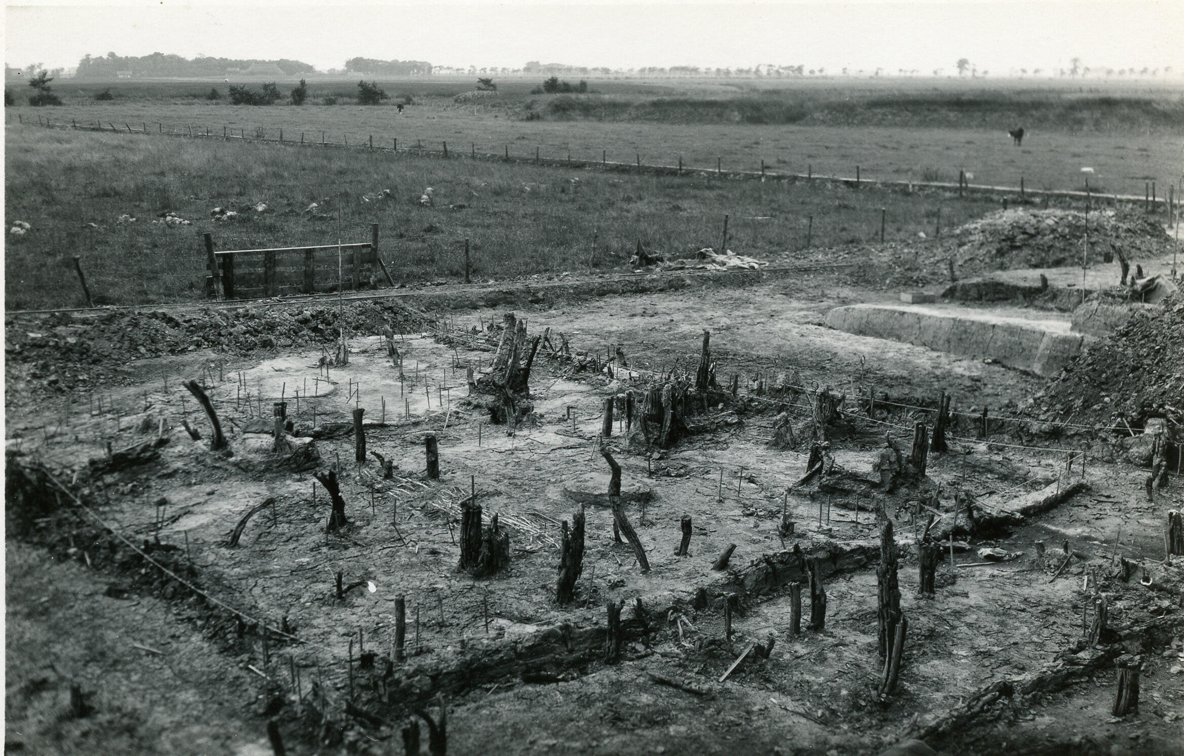 De resten van gebouwen die gevonden zijn tijdens de afgraving van de terp waarop het dorp Ezinge ligt. In Groningen worden terpen wierden genoemd. Afgegraven wierdegrond werd verkocht om te gebruiken als bodemverbeteraar op arme zandgronden. Archeoloog Albert Egges van Giffen (1884-1973) van de Rijksuniversiteit Groningen heeft van 1923 tot 1934 archeologisch onderzoek uitgevoerd bij ...