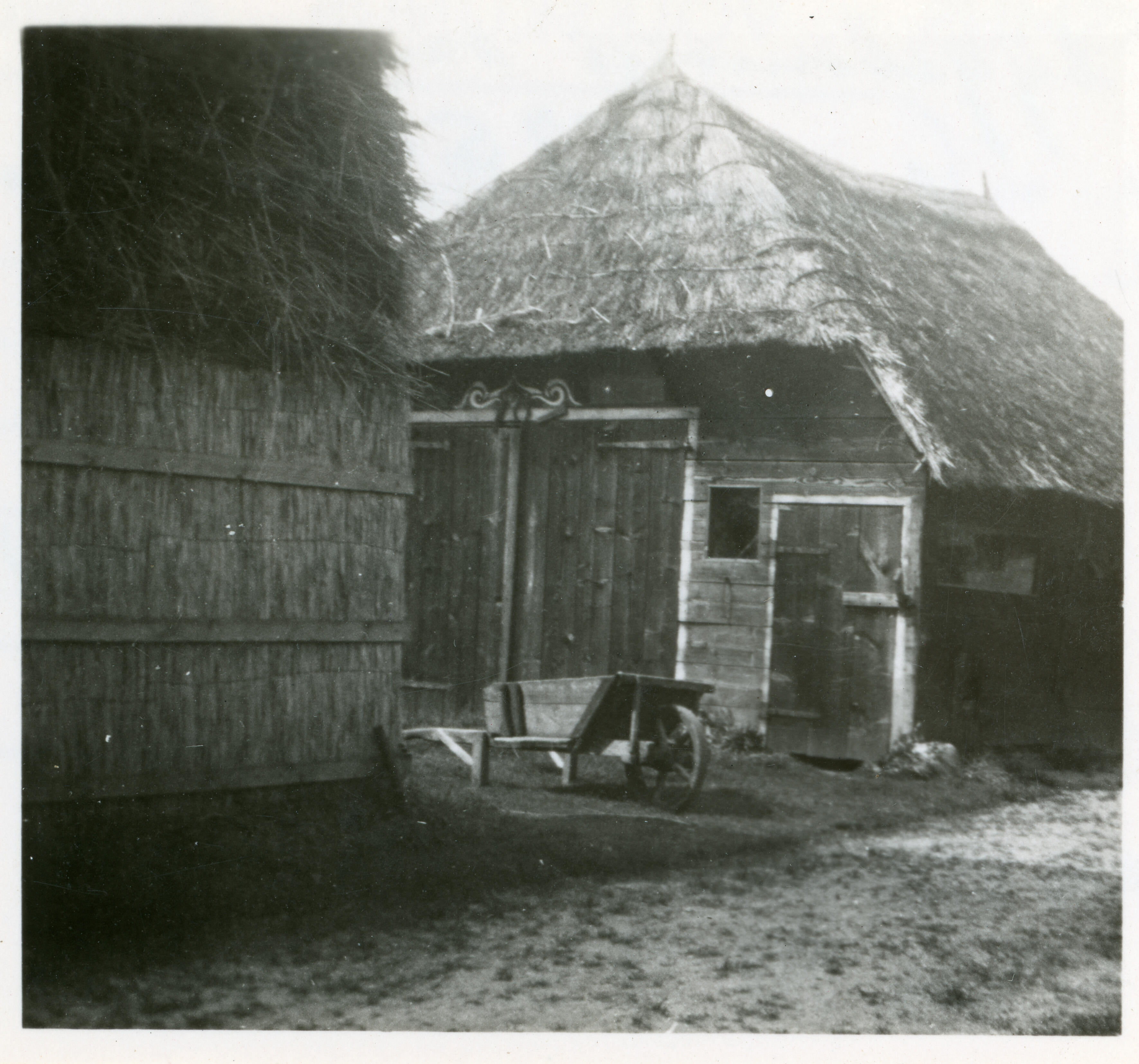 Bijschuur met kruiwagen, Nunspeet, 1930-1940 (zwart-wit foto)