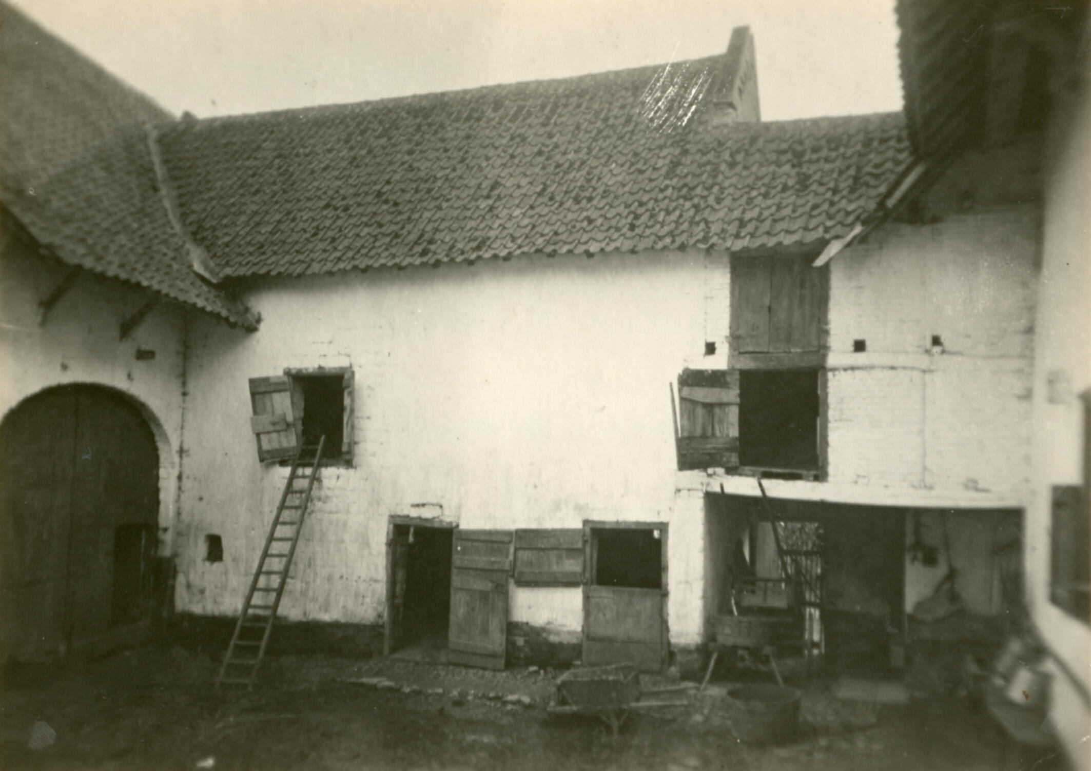 Binnenplaats van een vierkantshoeve, Sint Gerlach, 1937 (zwart-wit foto)