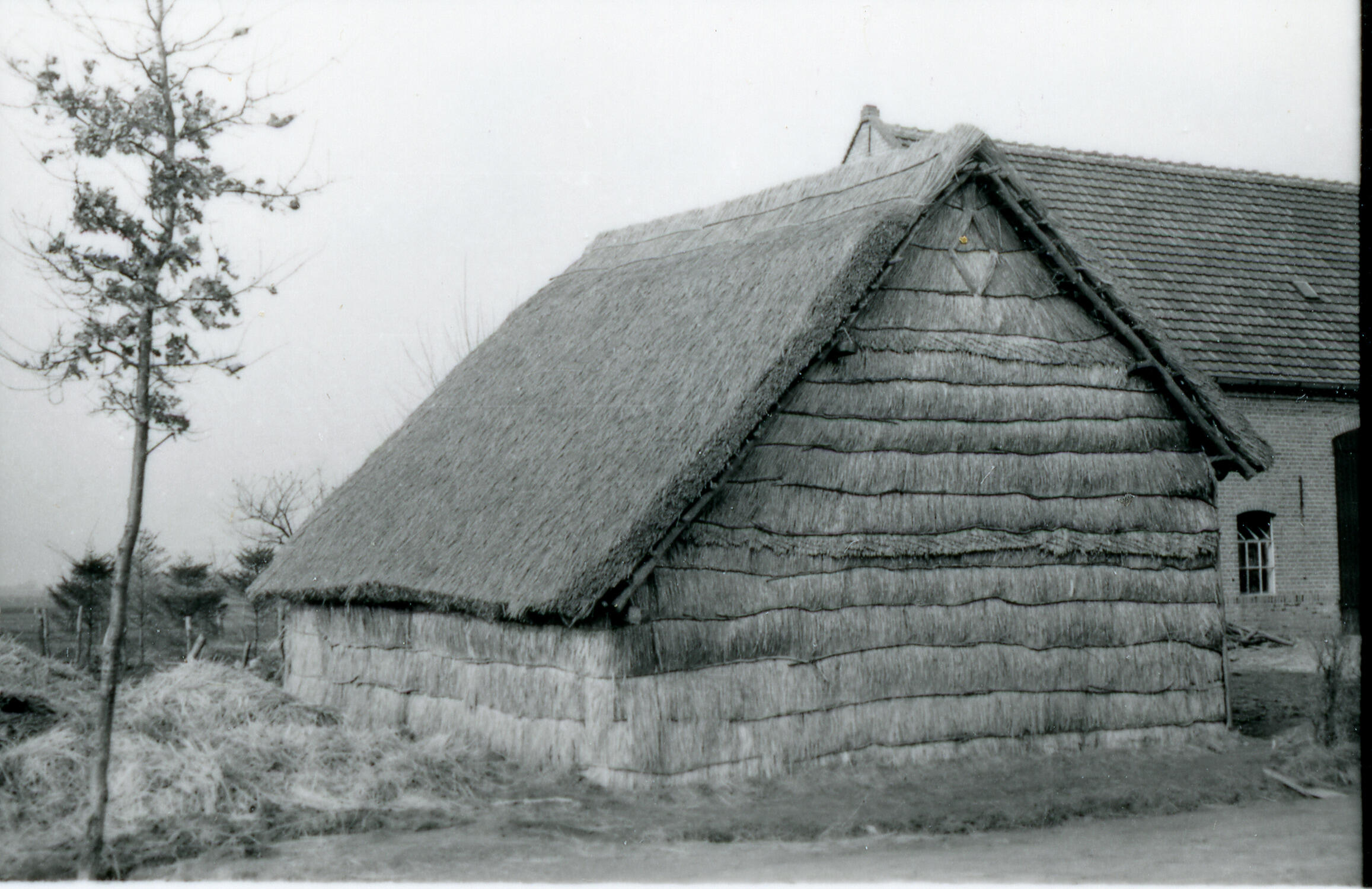 Schuur met strowanden, Deurne, 1940 (zwart-wit foto)