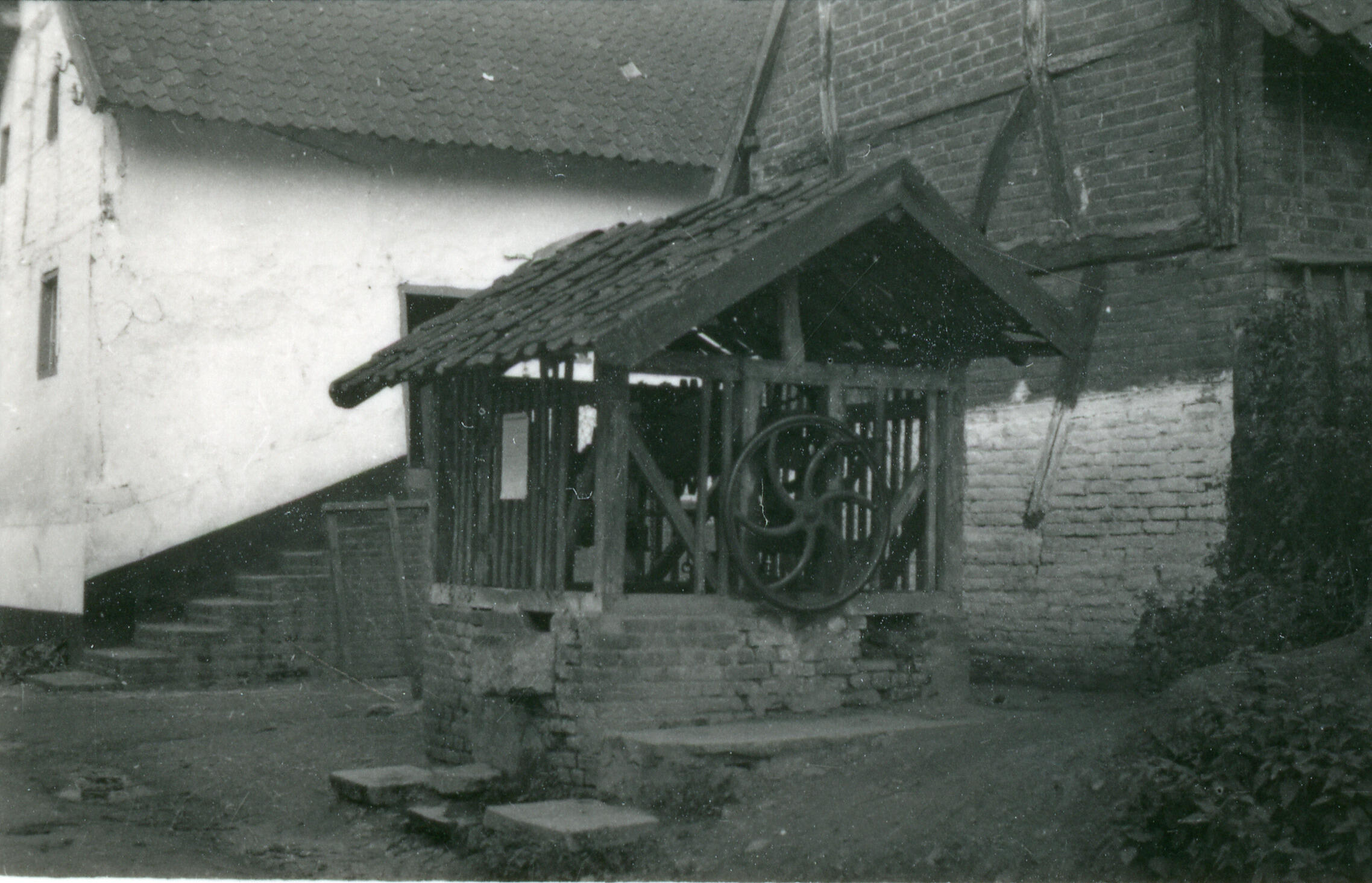 Een puthuis met een draaiwiel om de emmer te bedienen in het Limburgse Sint Geertruid.