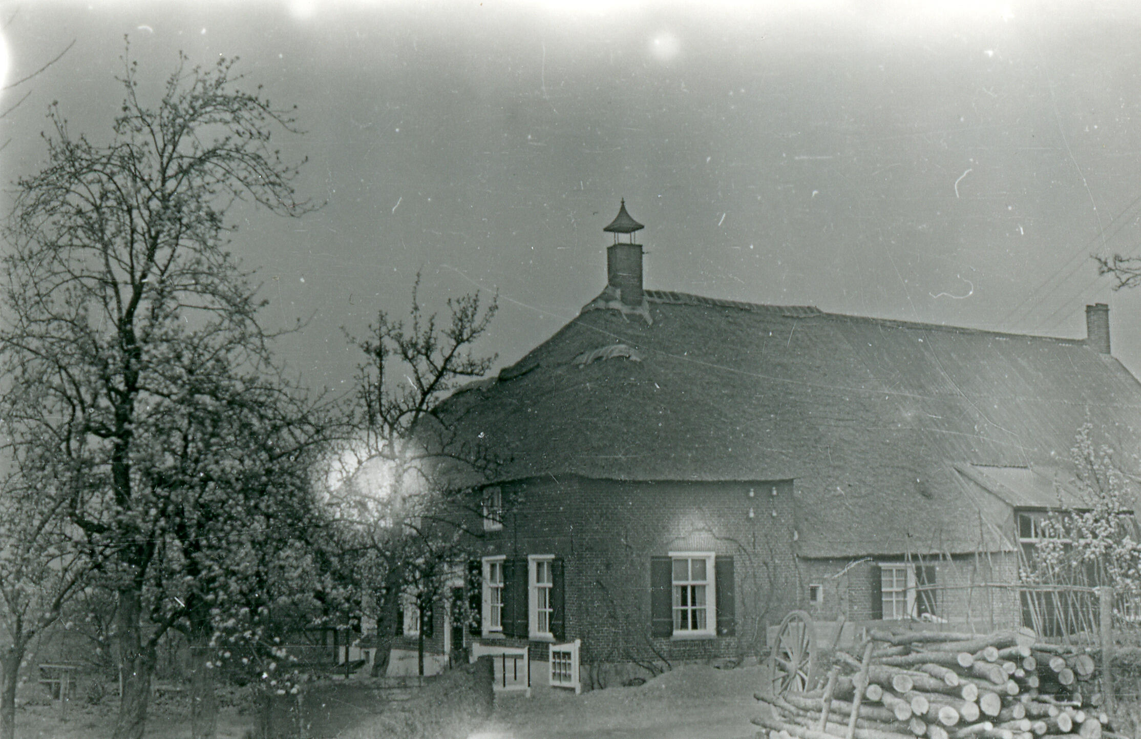 Boerderij met een dwarshuis, Genderen, 1943 (zwart-wit foto)