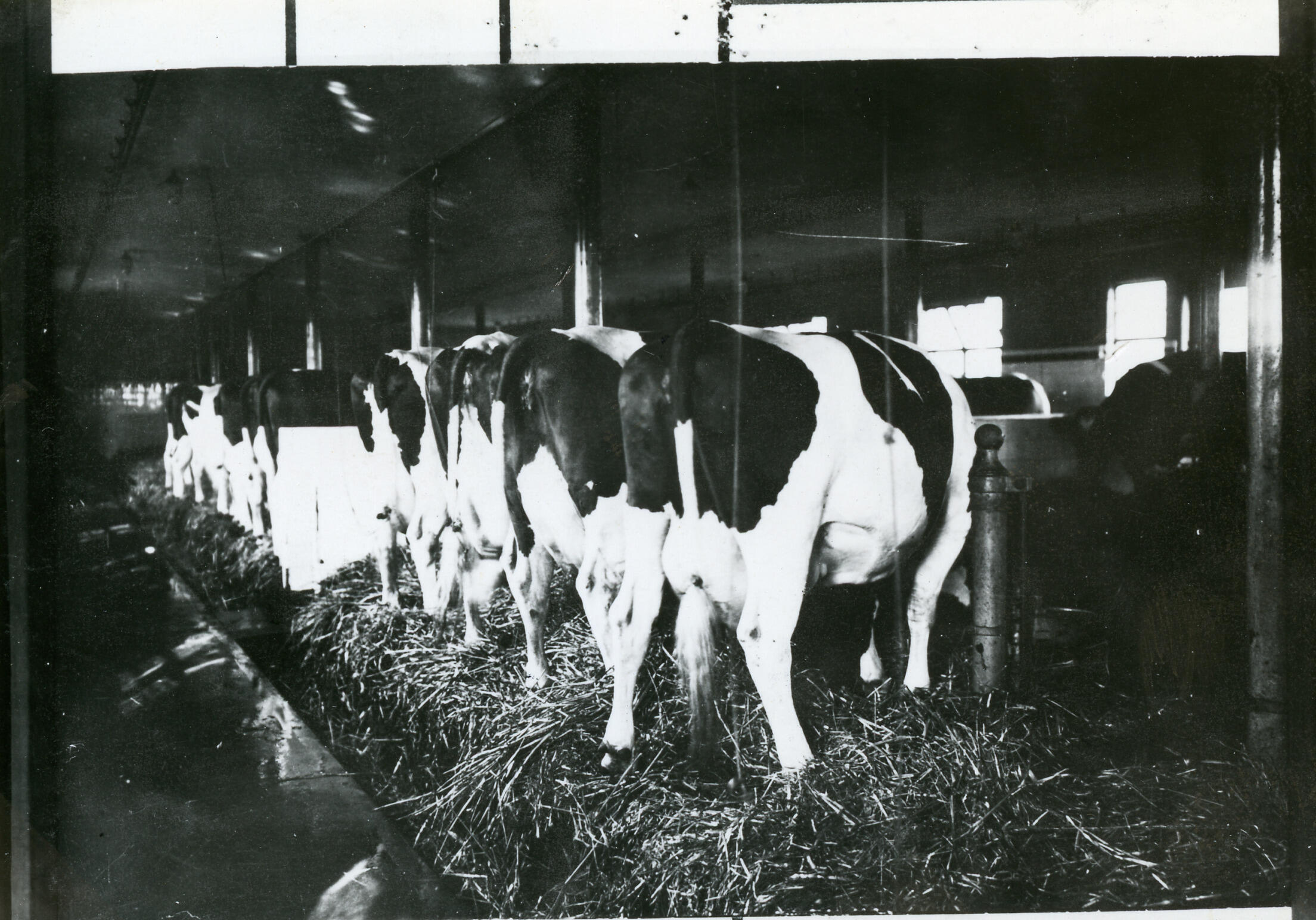 Stal met koeien, Wilsveen, 1926-1936 (zwart-wit foto)