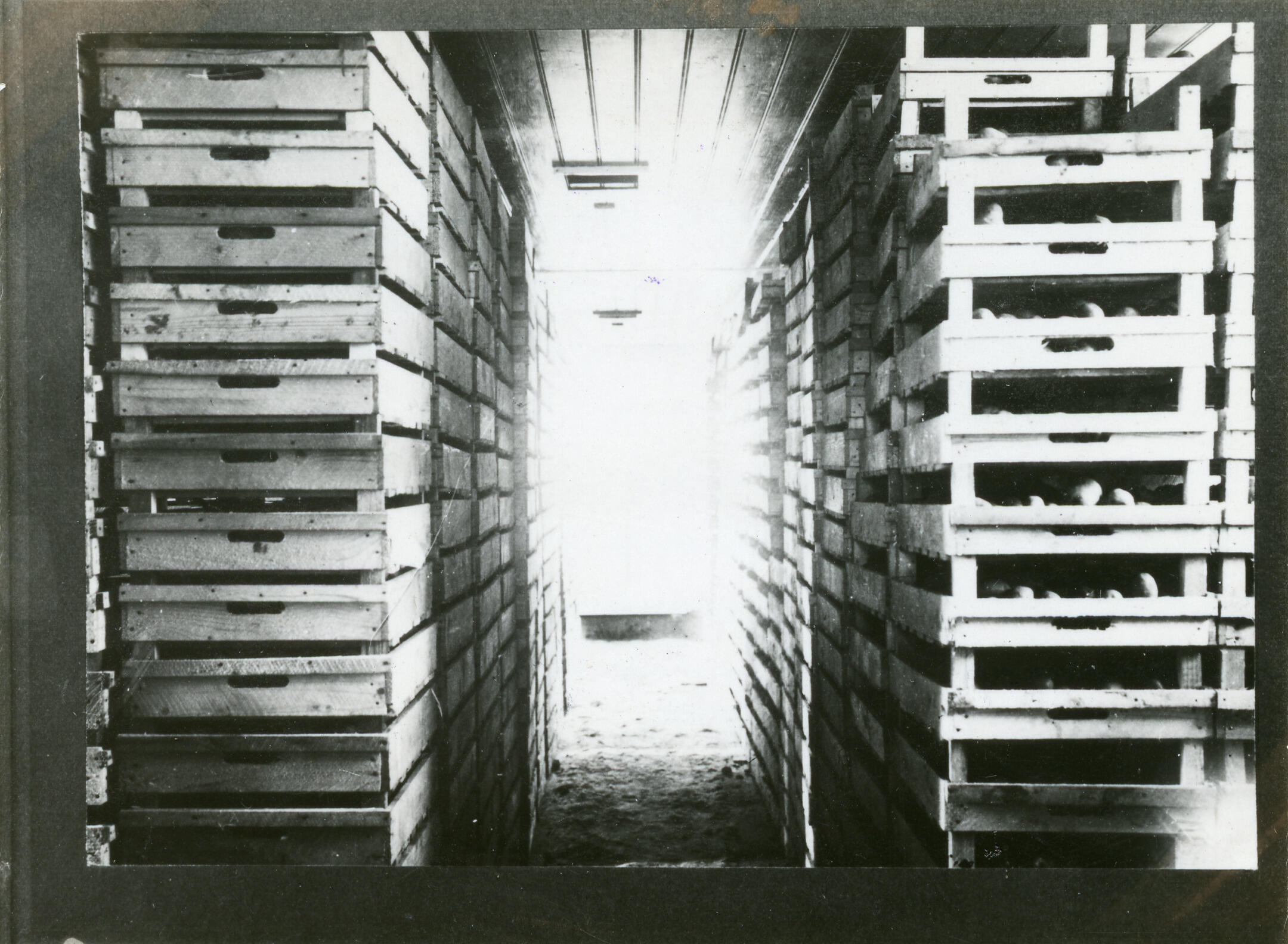 Interieur van een poterbewaarplaats, Nederland, 1926-1936 (zwart-wit foto)