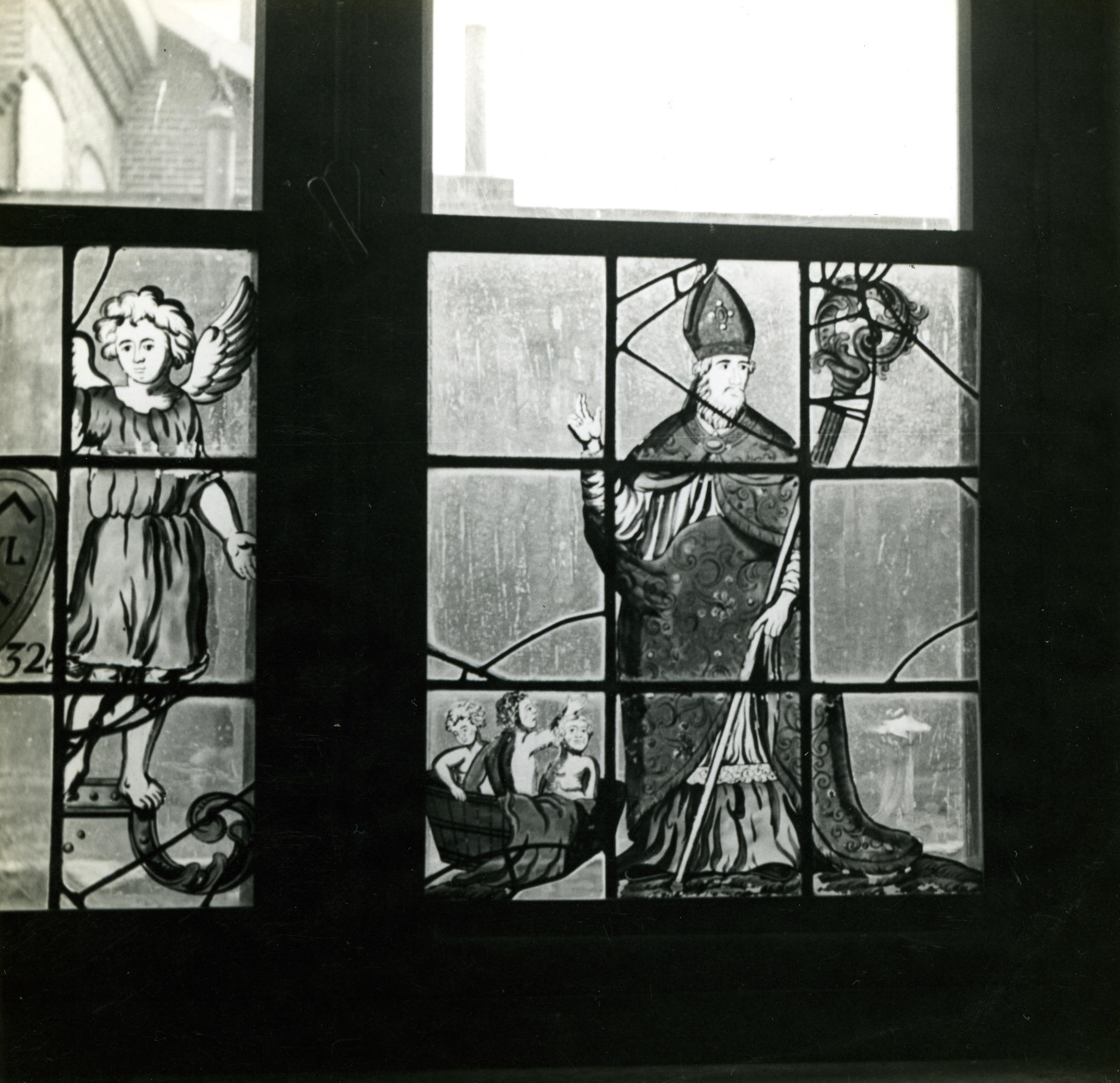Glas-in-loodramen, Roermond, 1948 (zwart-wit foto)