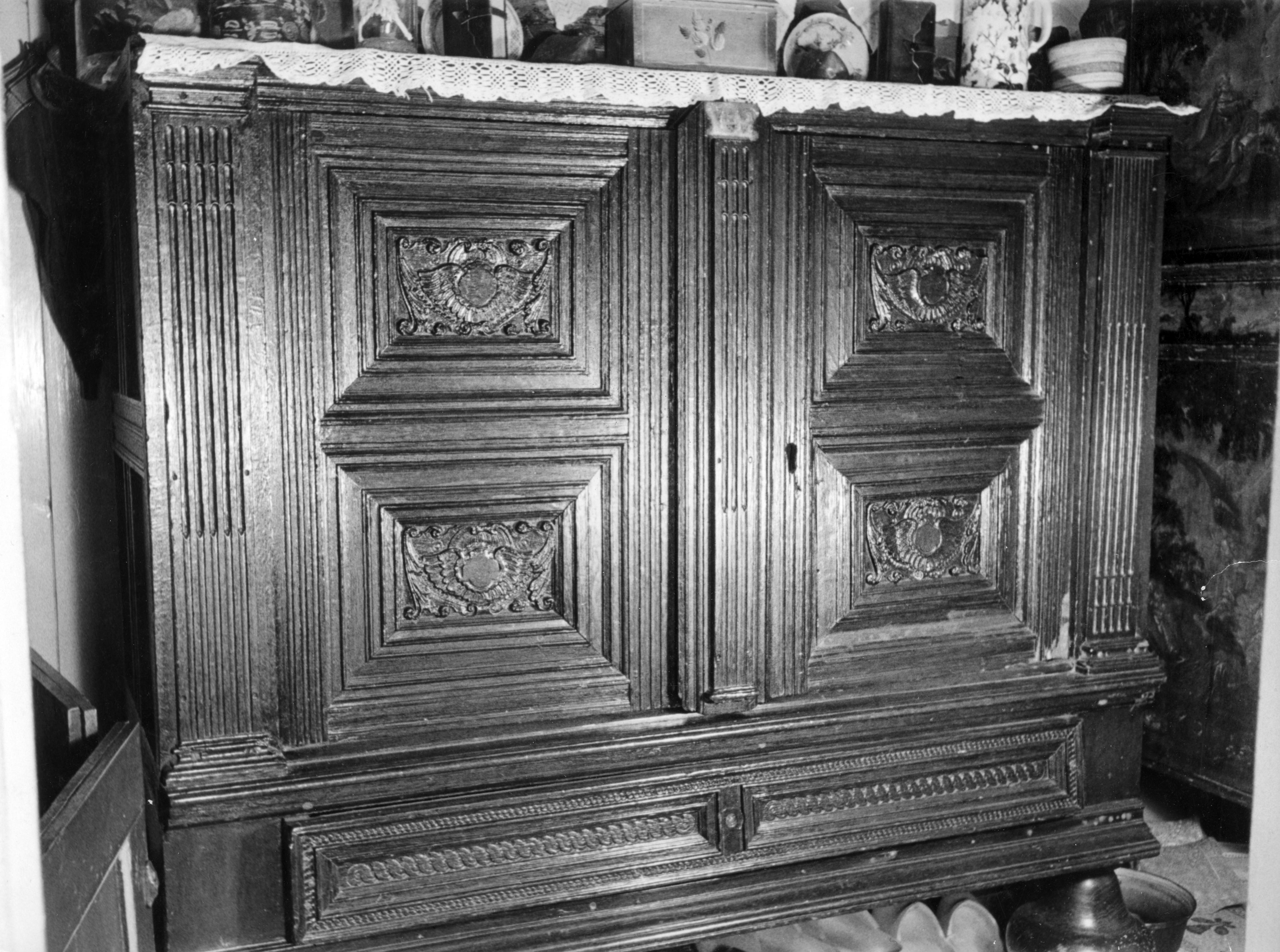 Besneden eikenhouten kast in een woning op Marken.
