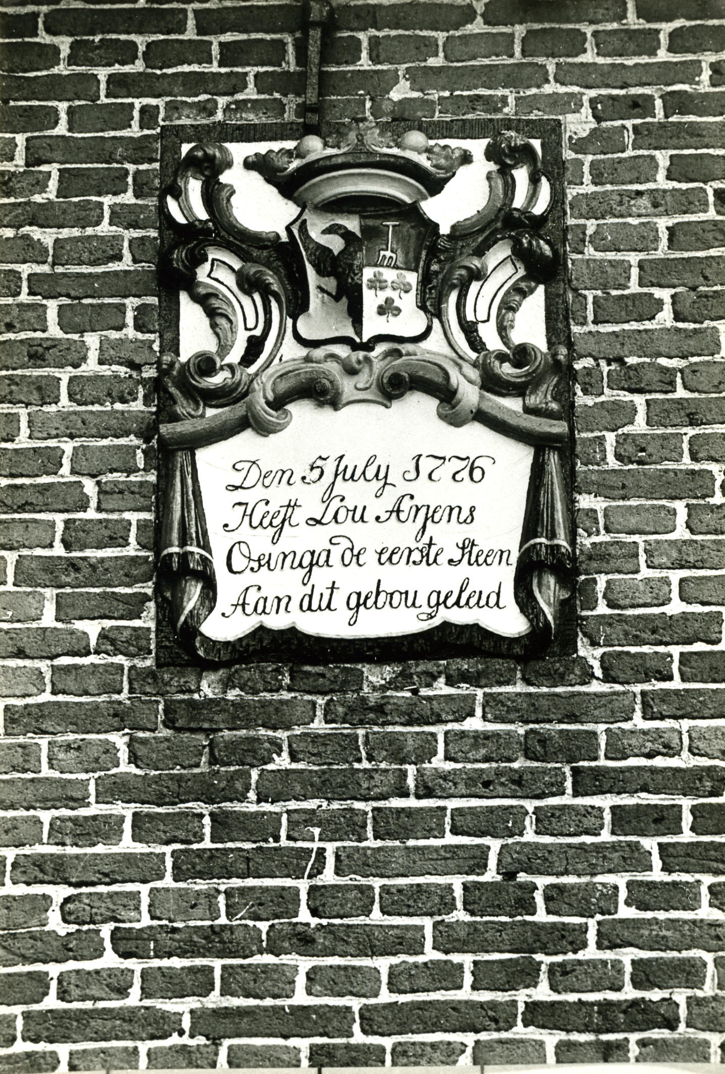 Gevelsteen uit 1776 in de topgevel van het woongedeelte van kop-hals-rompboerderij 'Great Fellingwert', ten noorden van het dorp Menaldum. De boerderij wordt ook wel 'It Fjouwerhûs' (Het Vierhuis) genoemd. Het opschrift op de gevelsteen luidt: 'Den 5 July 1776 heeft Lou Arjens Osinga de eerste steen aan dit gebou geleid'.