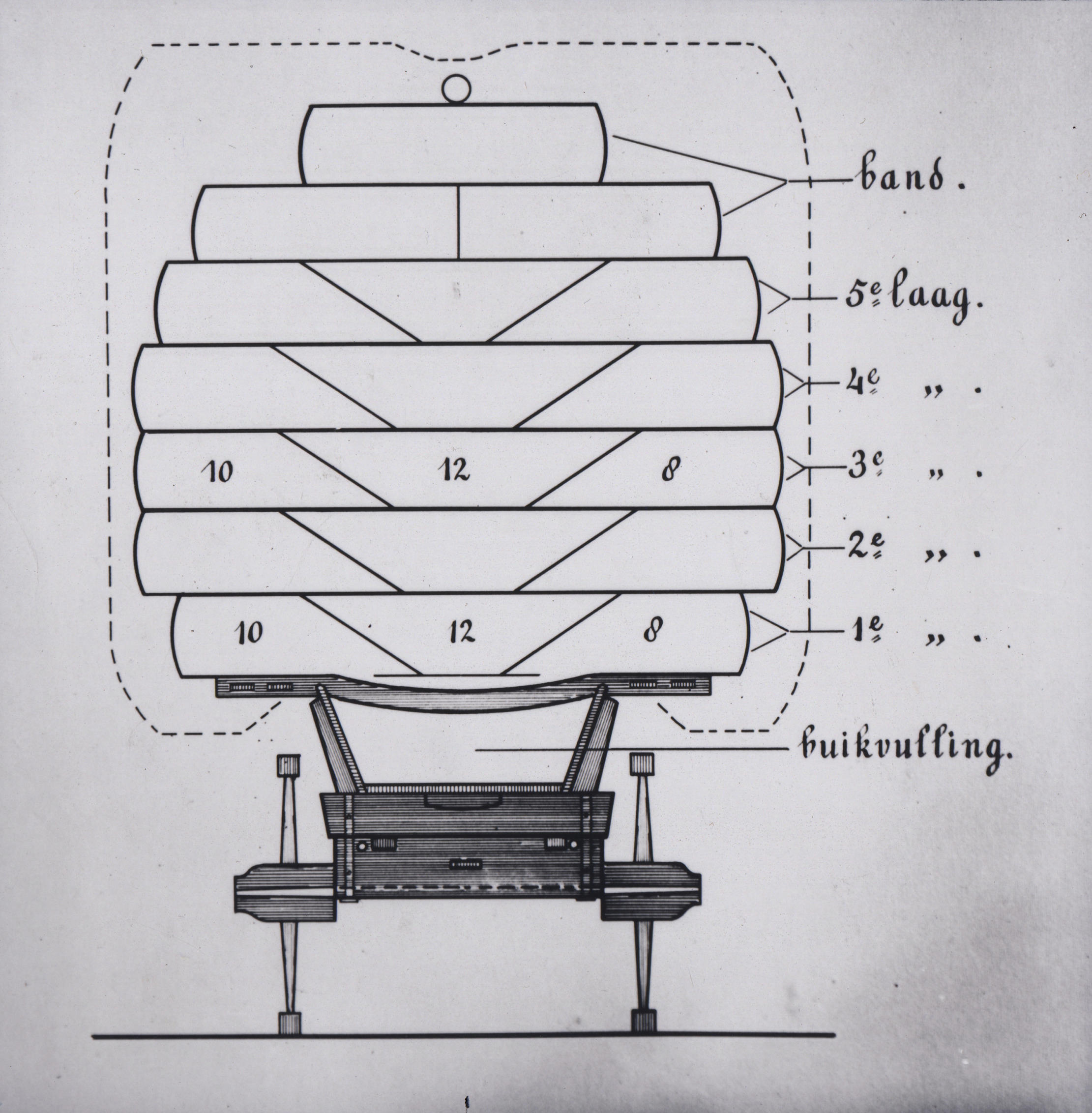 Tekening van een schematische dwarsdoorsnede van een geladen hooiwagen uit Friesland.