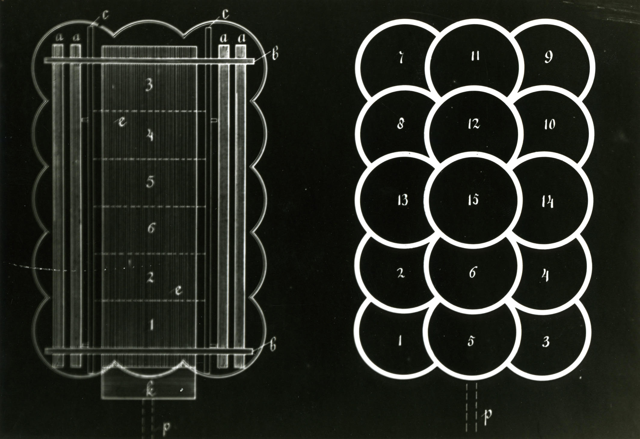Tekening van een schematisch bovenaanzicht van een geladen hooiwagen uit Friesland.