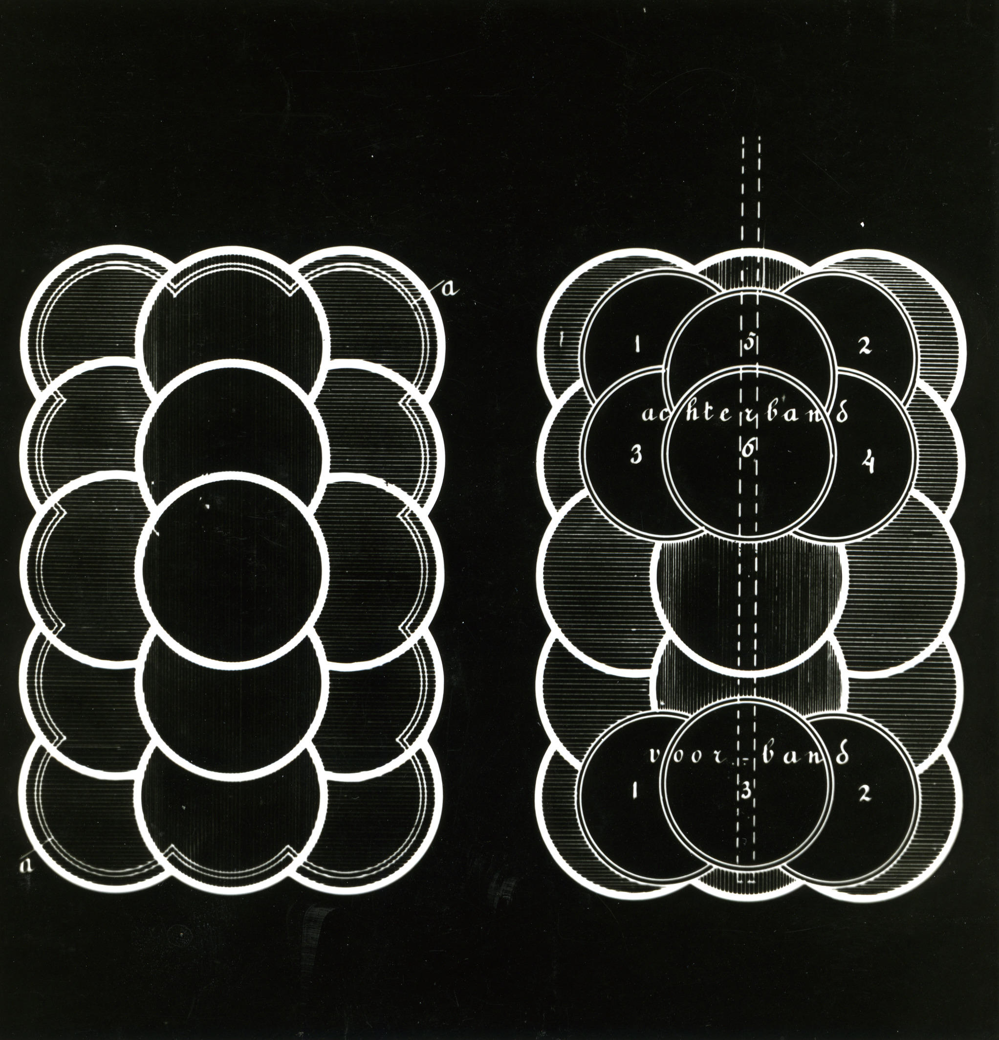 Tekening van een schematisch bovenaanzicht van een geladen hooiwagen uit Friesland.