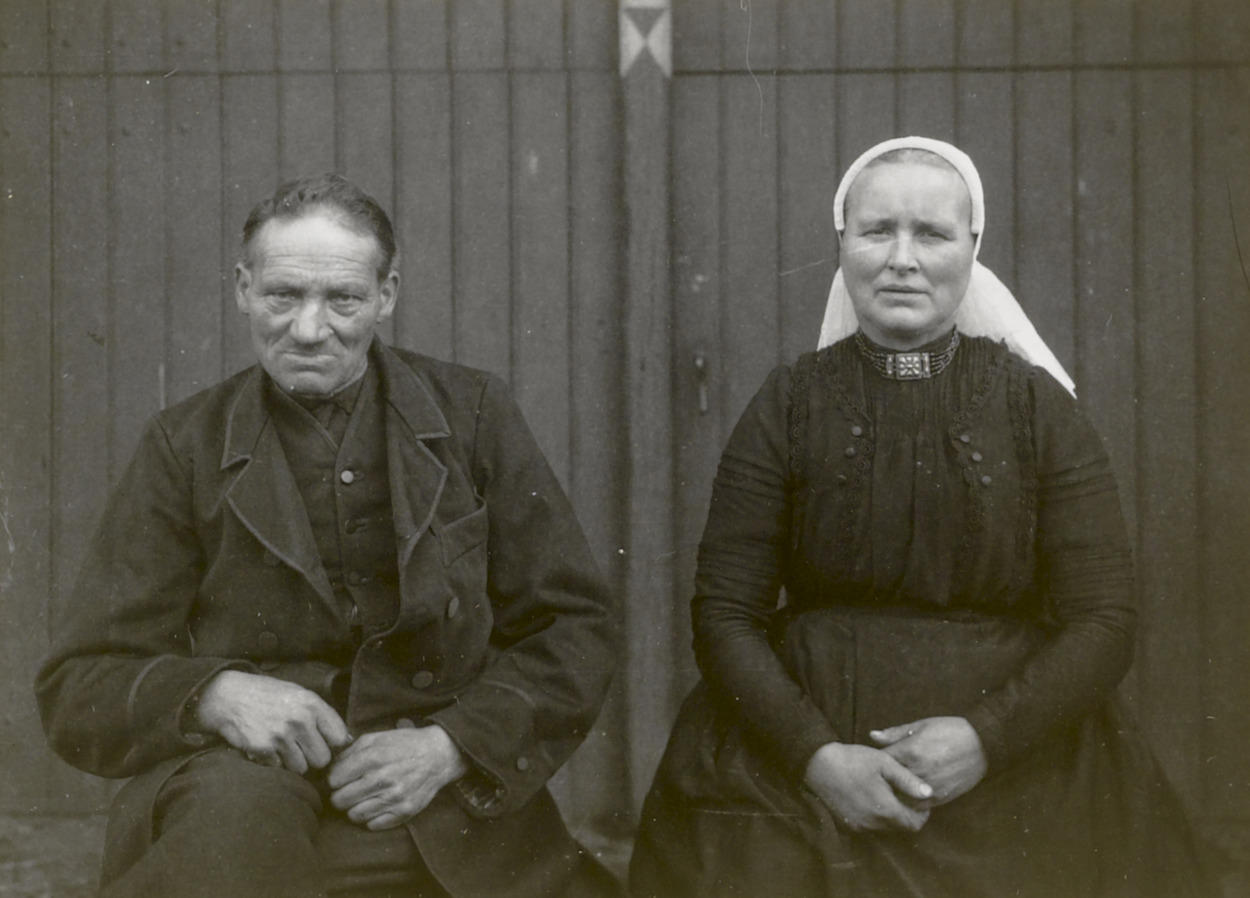 Man en vrouw in Gelderse dracht, 1914–1934 (zwart-wit foto)