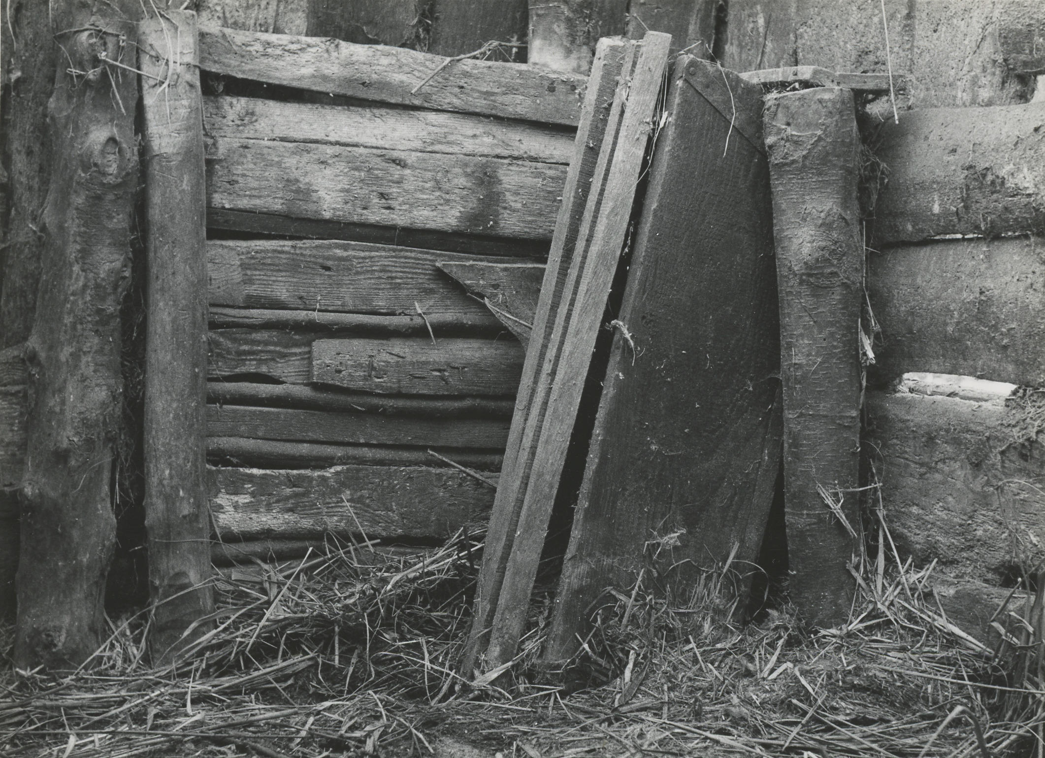 Afbraak van een boerderij, Giethoorn, 1957 (zwart-wit foto)