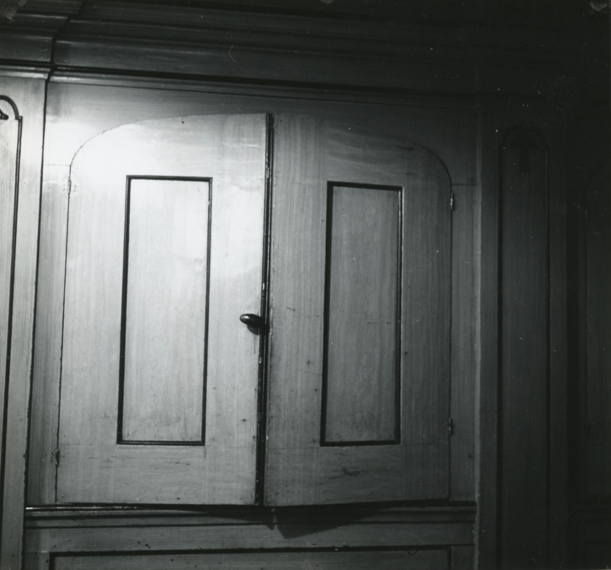 Wandbetimmering met een bedstede en een deur in een boerderij in Lheebroek, bij Dwingeloo.