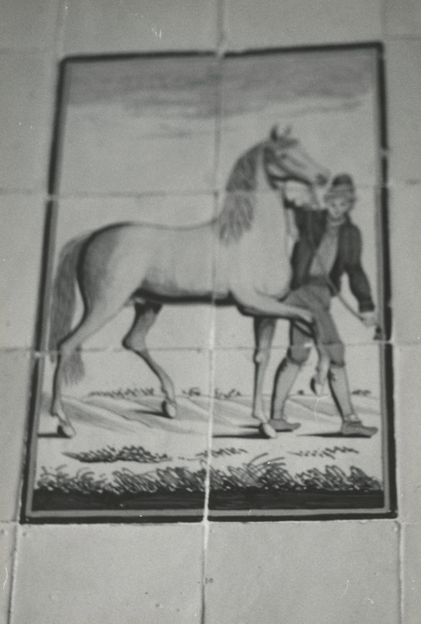 Tegeltableau met een afbeelding van een paard, Lheebroek, 1958 (zwart-wit foto)