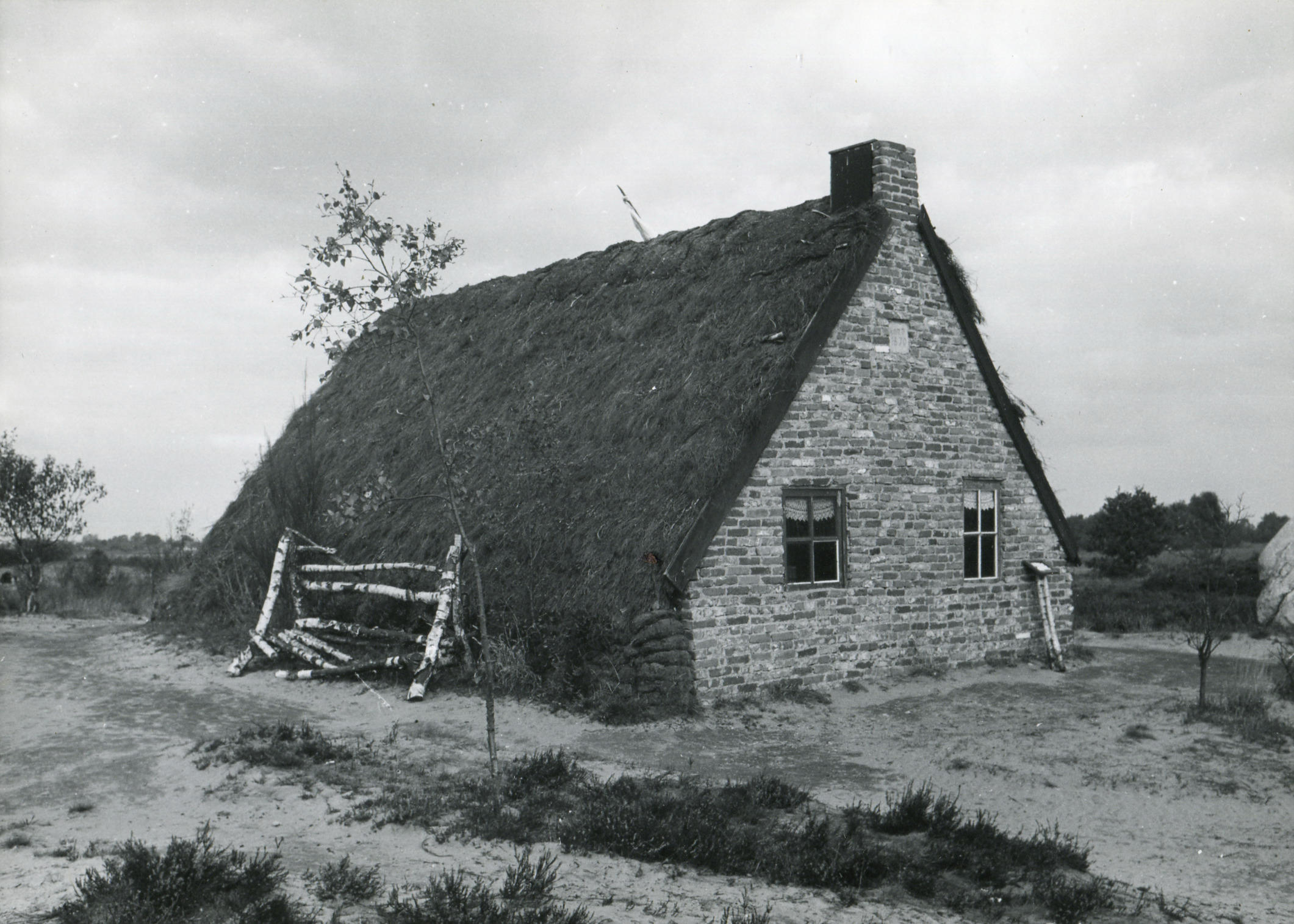 Plaggenhut in openluchtmuseum Schoonoord, 1959 (zwart-wit foto)