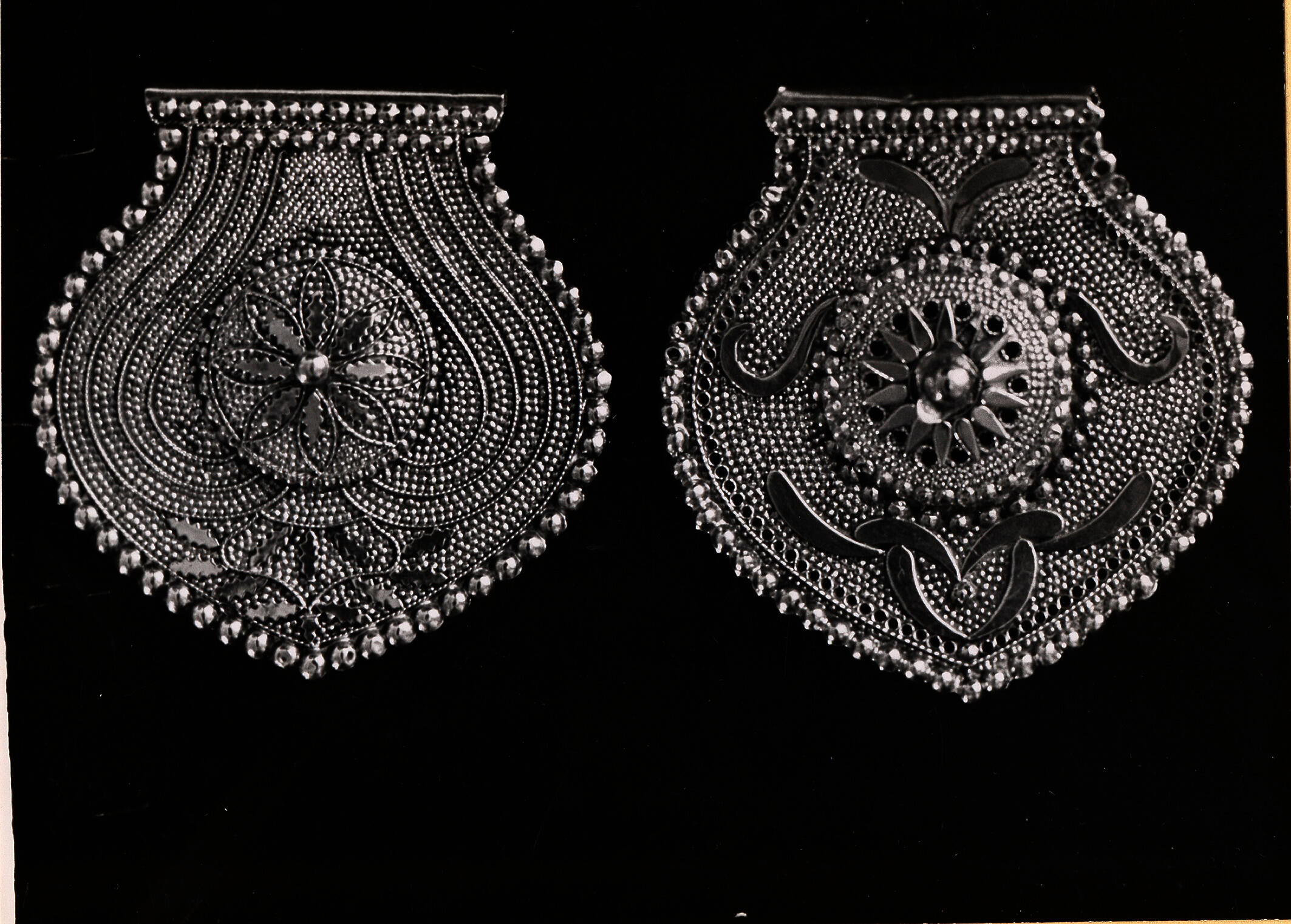 Twee verschillende oorijzerstiften, Friesland, 1947 (zwart-wit foto)