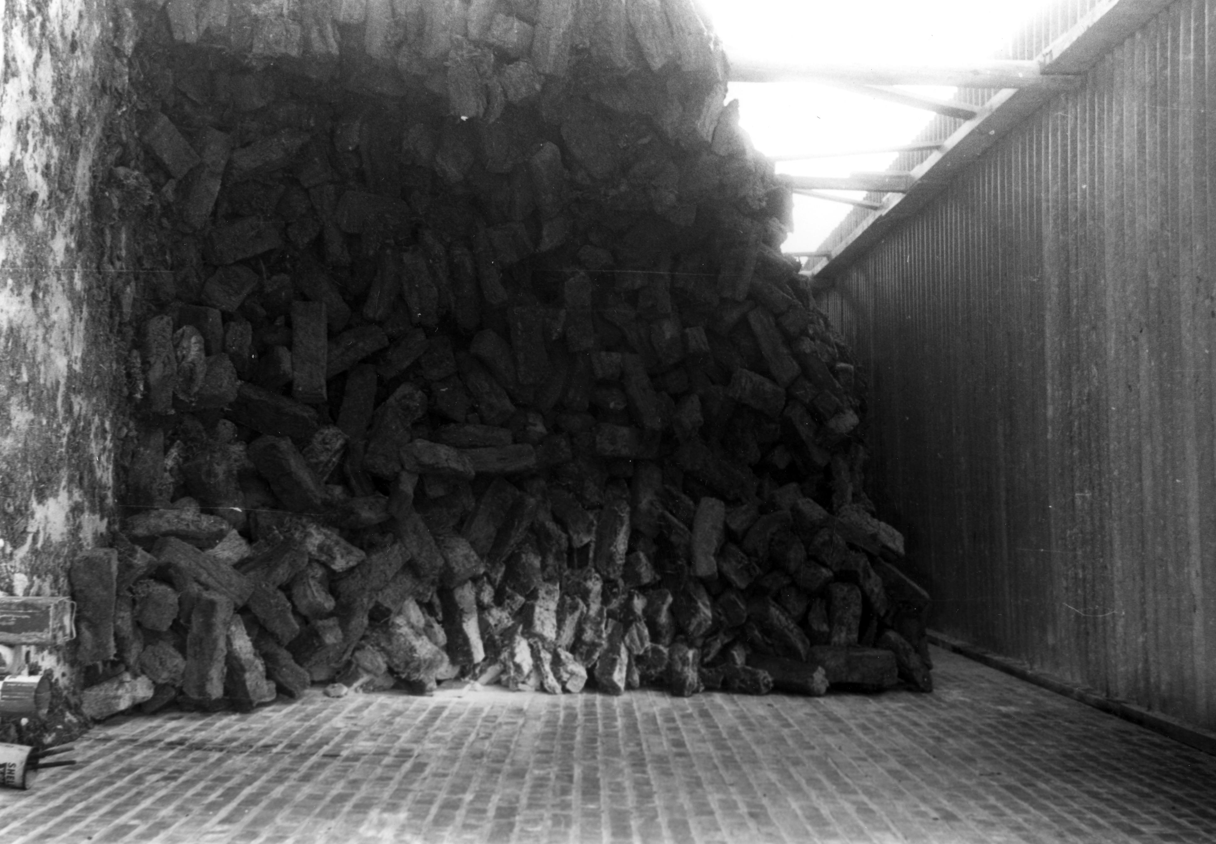 De turfopslagplaats van schelpkalkbranderij Veenstra in Sneek. Bij een schelpkalkbranderij worden schelpen gebrand voor de fabricage van schelpkalk, een grondstof voor mortel. Schelpen bestaan uit calciumcarbonaat (CaCO3). De kalk (CaCO3) wordt in een kalkoven tot meer dan 1000 °C verhit. Hierbij ontleedt deze kalk in calciumoxide (CaO) en koolzuurgas (CO2), dat vervluchtigt. Het oxide valt ...