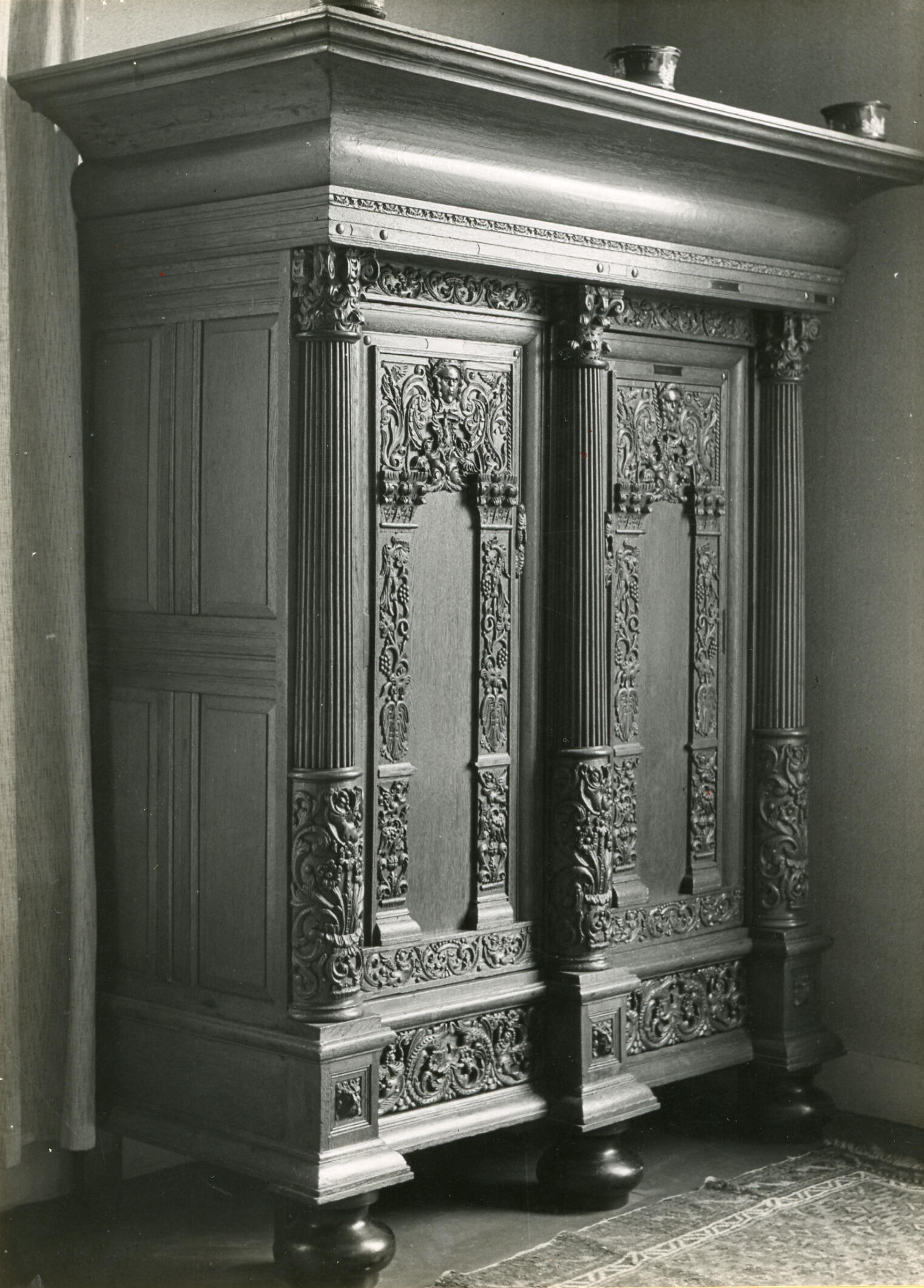 Eikenhouten kast uit Friesland, 1947 (zwart-wit foto)