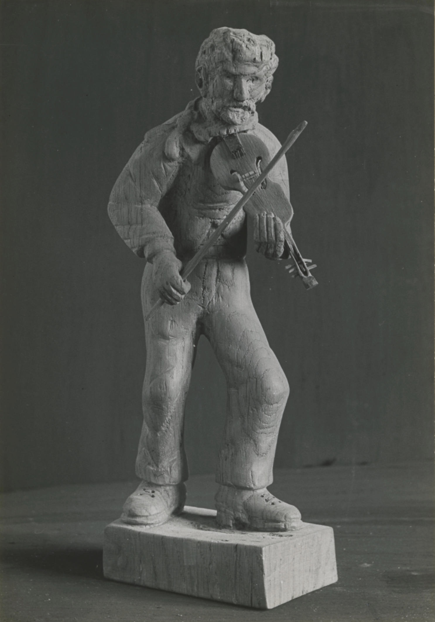 Eikenhouten beeld van een violist, vervaardigd door mijnwerker-beeldhouwer Nicolaus Duprez (1867-1949) uit Heerlen.