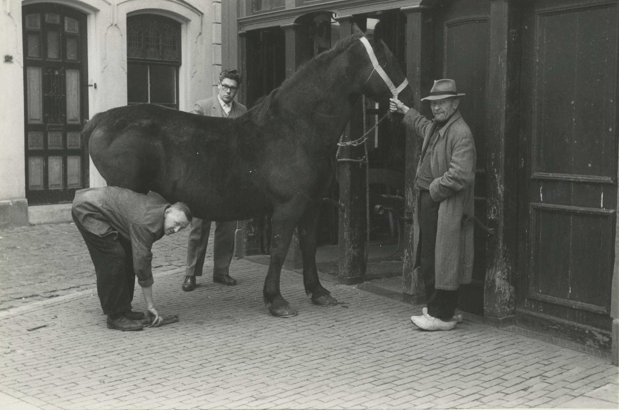 Hoefsmederij Poppe, Zwolle, 1960 (zwart-wit foto)