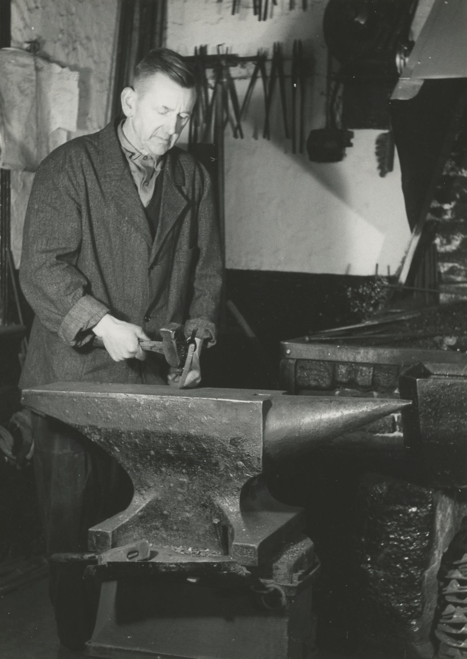 Hoefsmederij Poppe, Zwolle, 1960 (zwart-wit foto)
