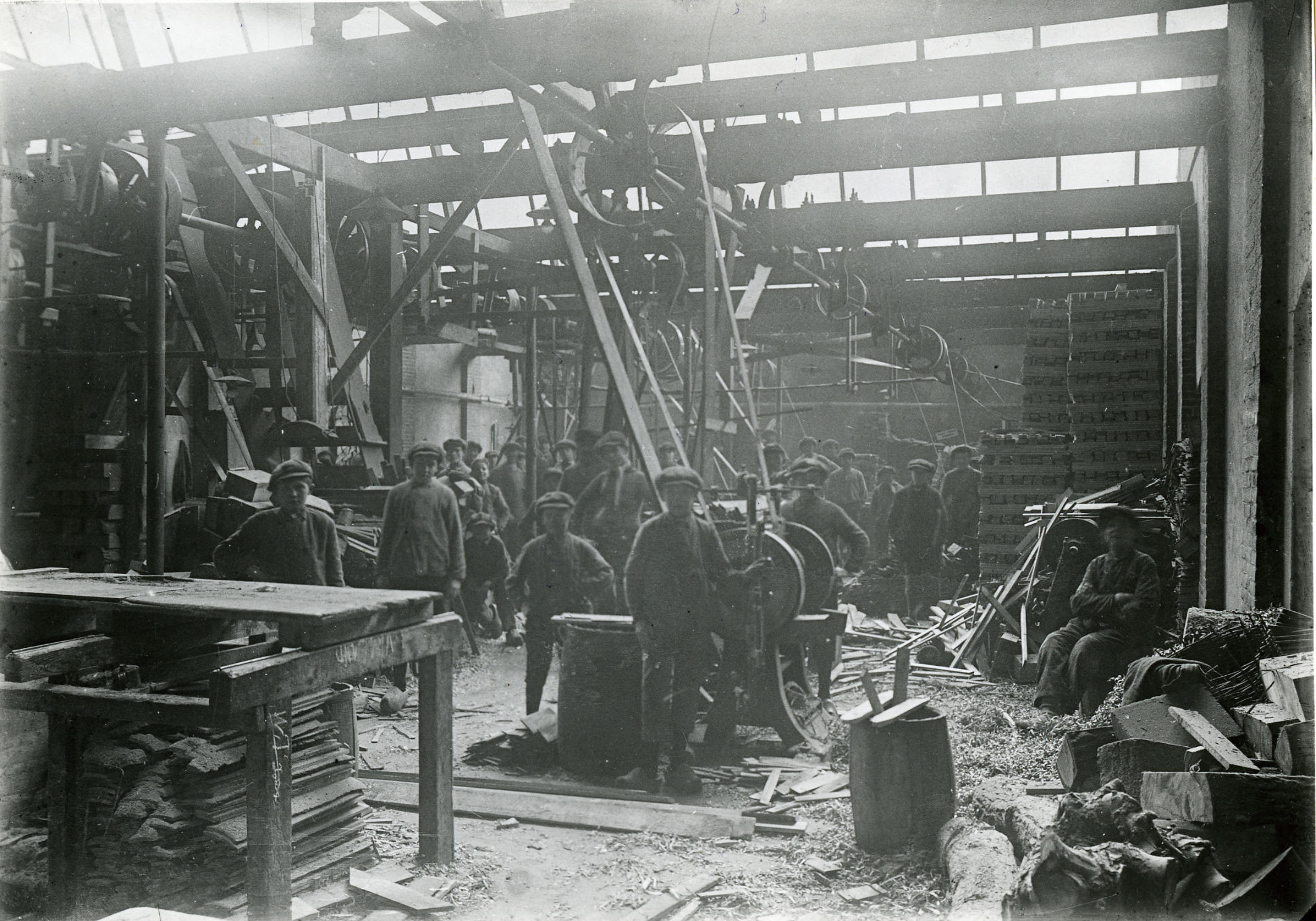 Jongens staan in het interieur van een stoomkuiperij in Vlaardingen.