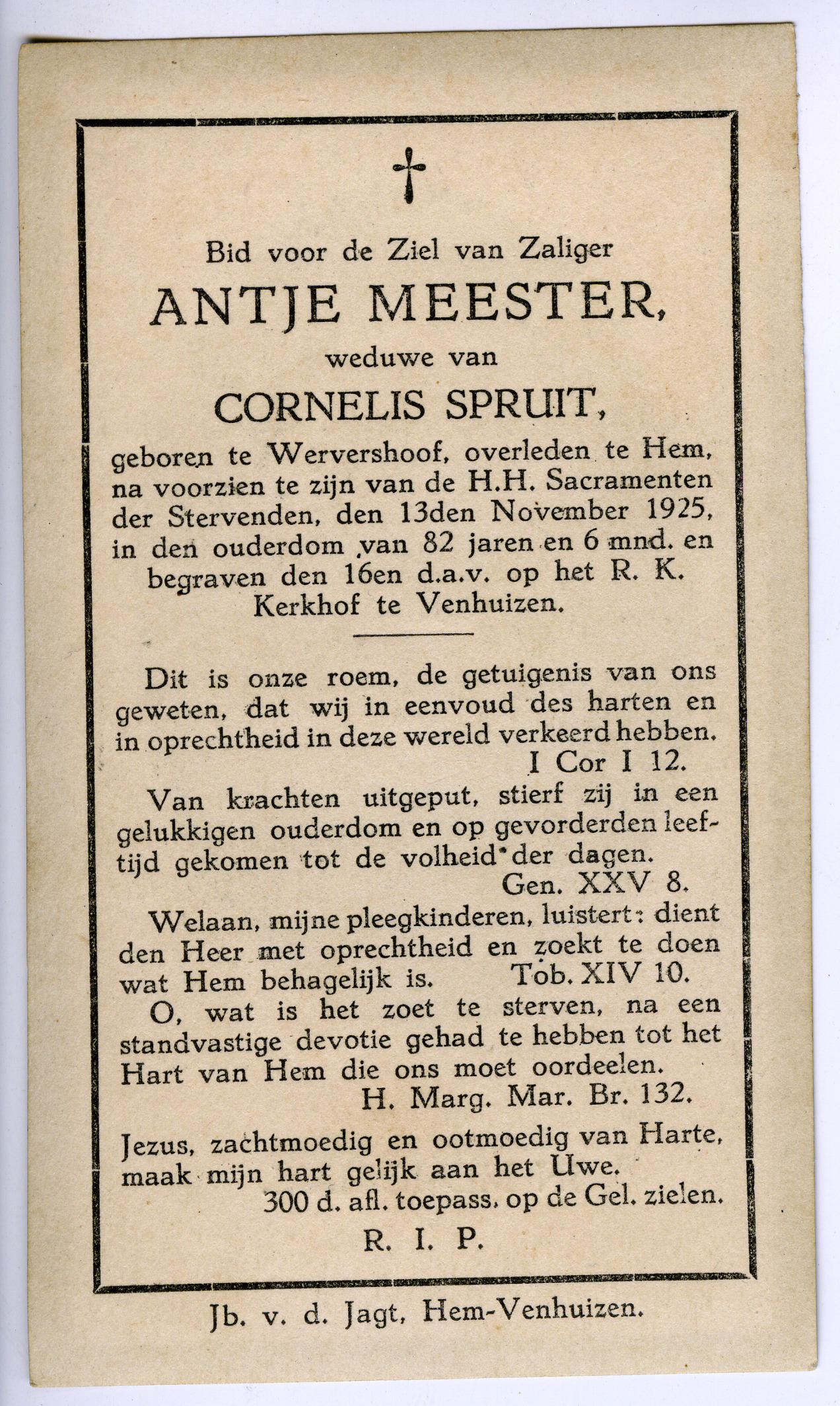 Bidprentje van Antje Meester, 1925 (bidprentje)