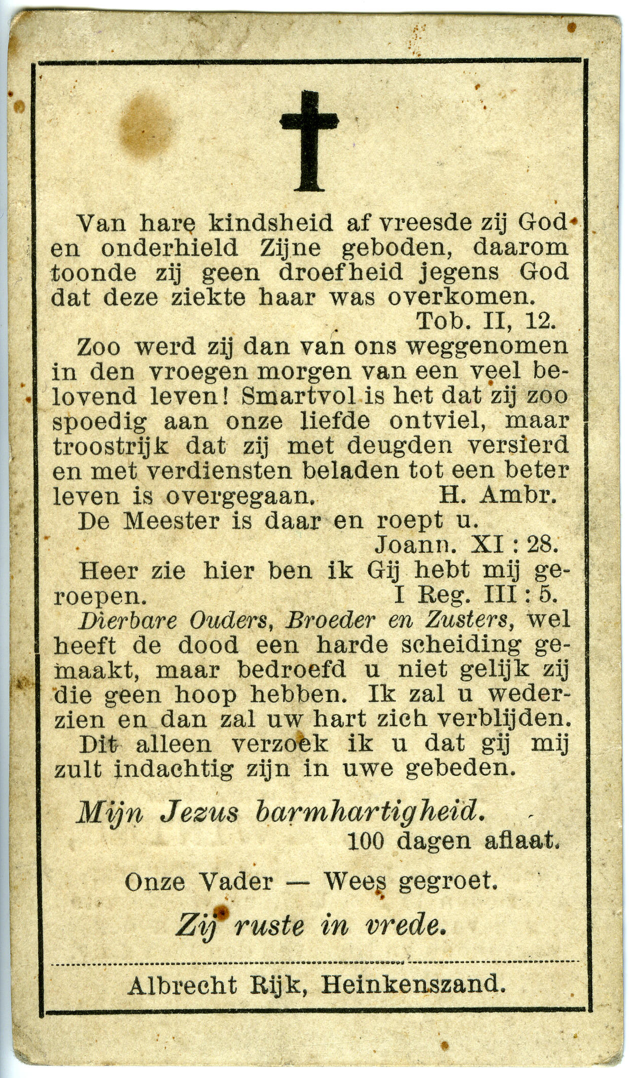 Bidprentje van Helena de Winter, 1927 (bidprentje)