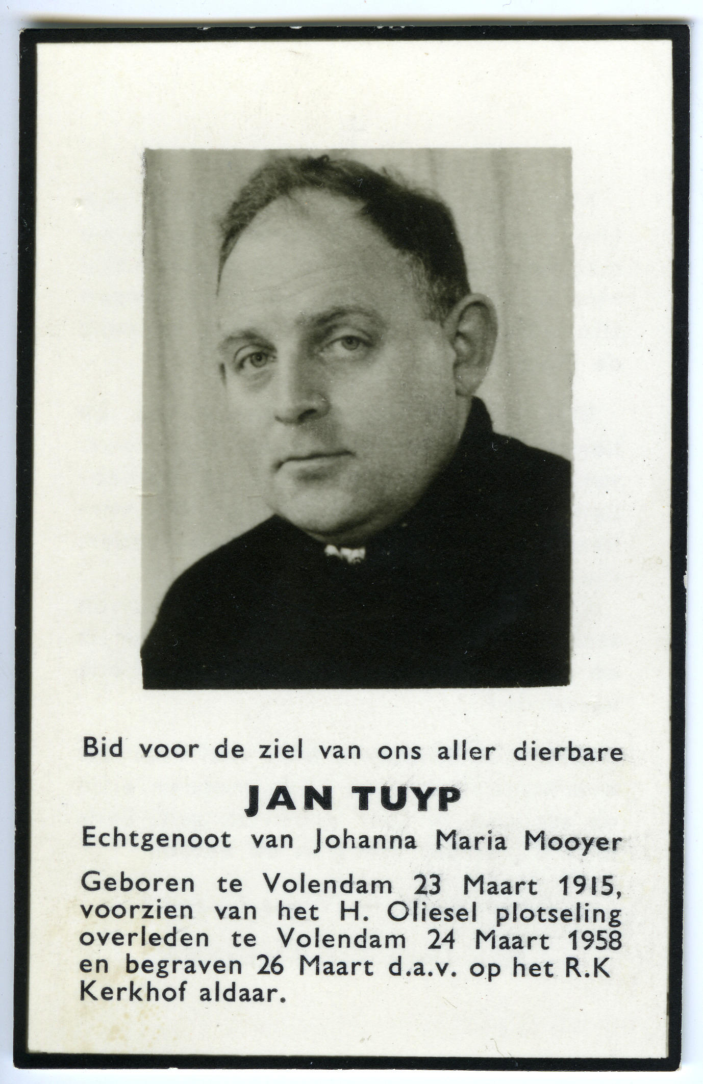 Bidprentje van Jan Tuyp, 1958 (bidprentje)