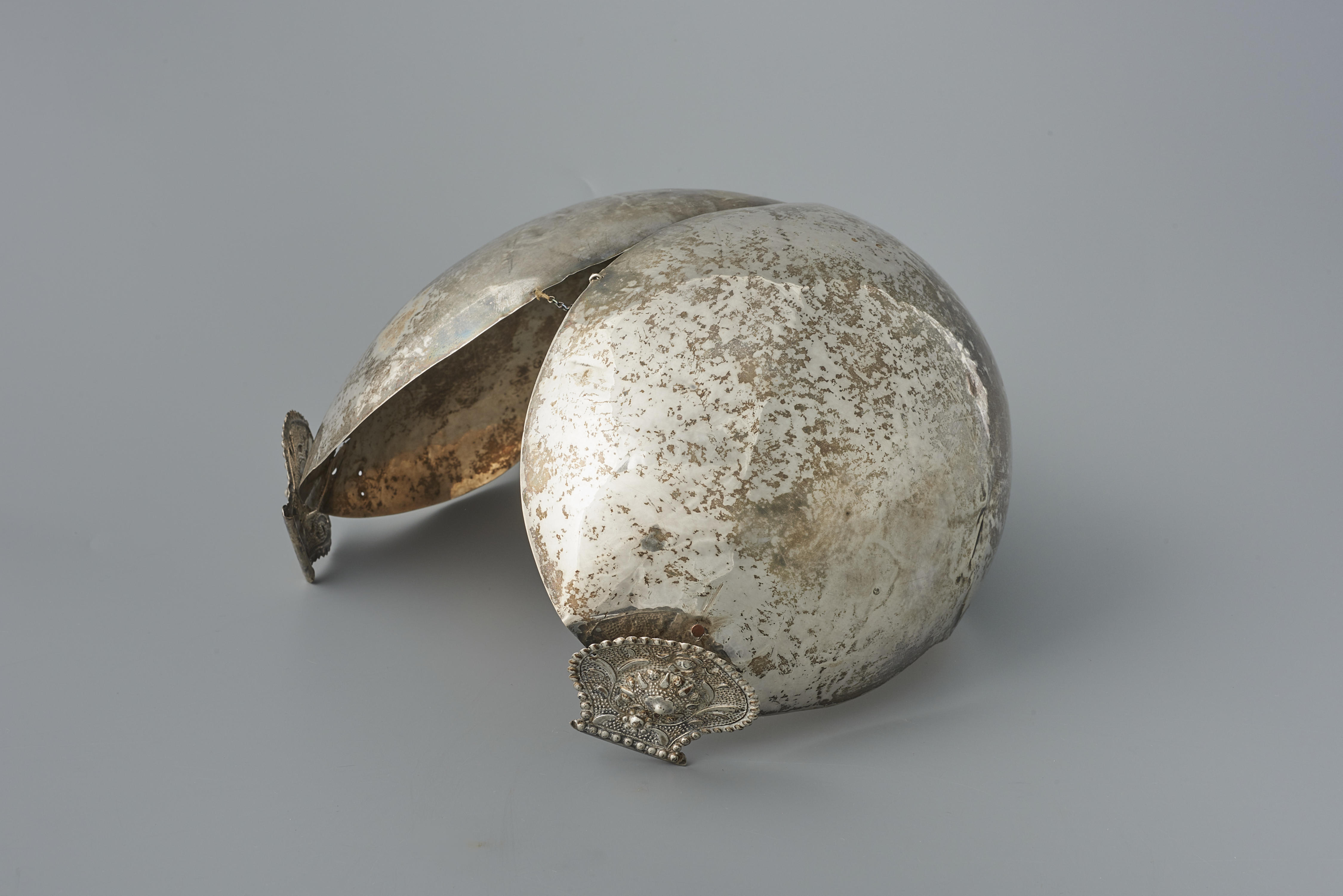 Zilveren oorijzer met zilveren stiften, gedragen door een vrouw in streekdracht uit Wanneperveen. In het oorijzer staan een meesterteken en een onduidelijke jaarletter. De jaarletter is bij binnenkomst in het museum geïnterpreteerd als de jaarletter van 1900. De stiften aan dit oorijzer zijn van het Friese type. In de kop van Overijssel werden zowel Friese ...
