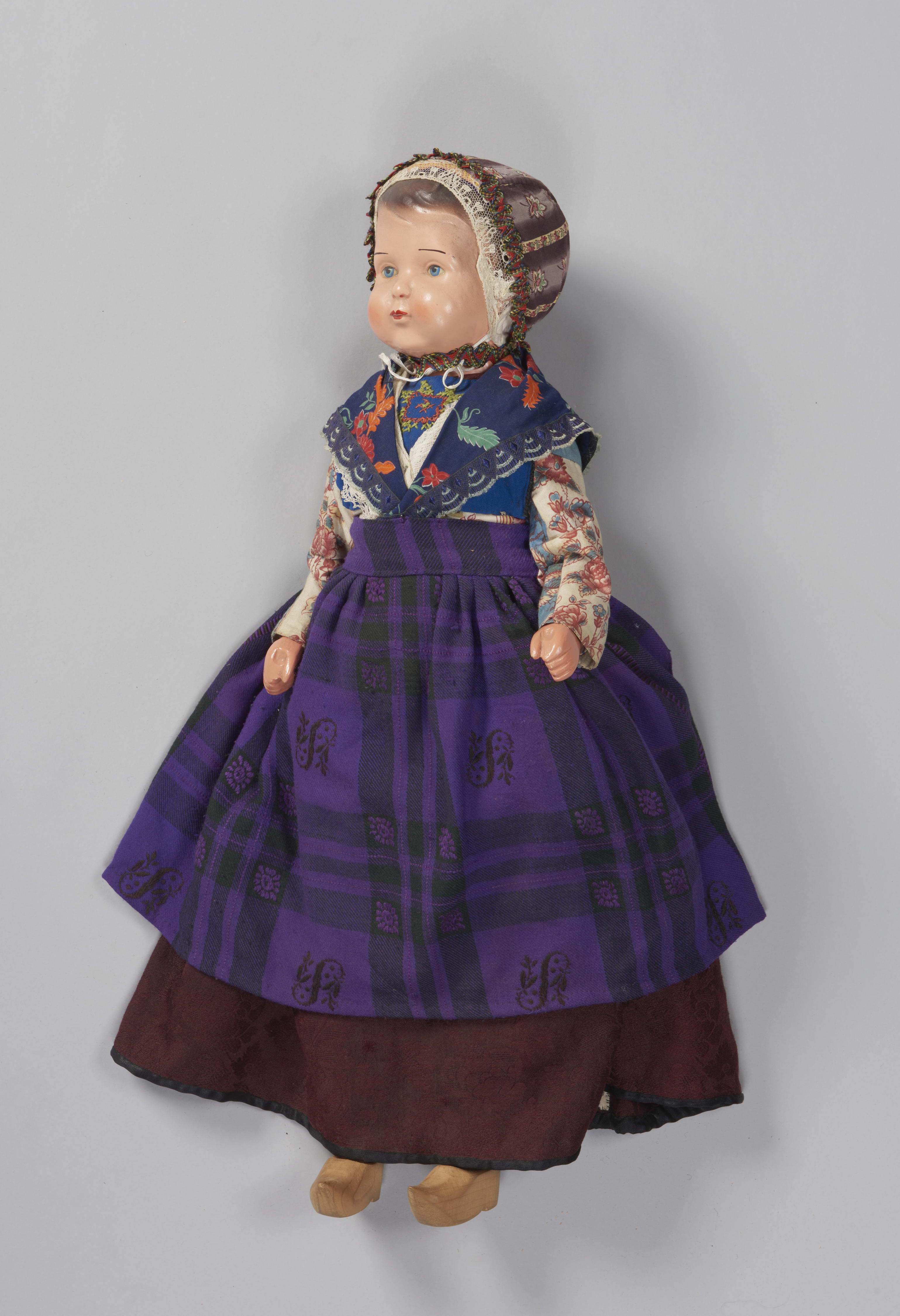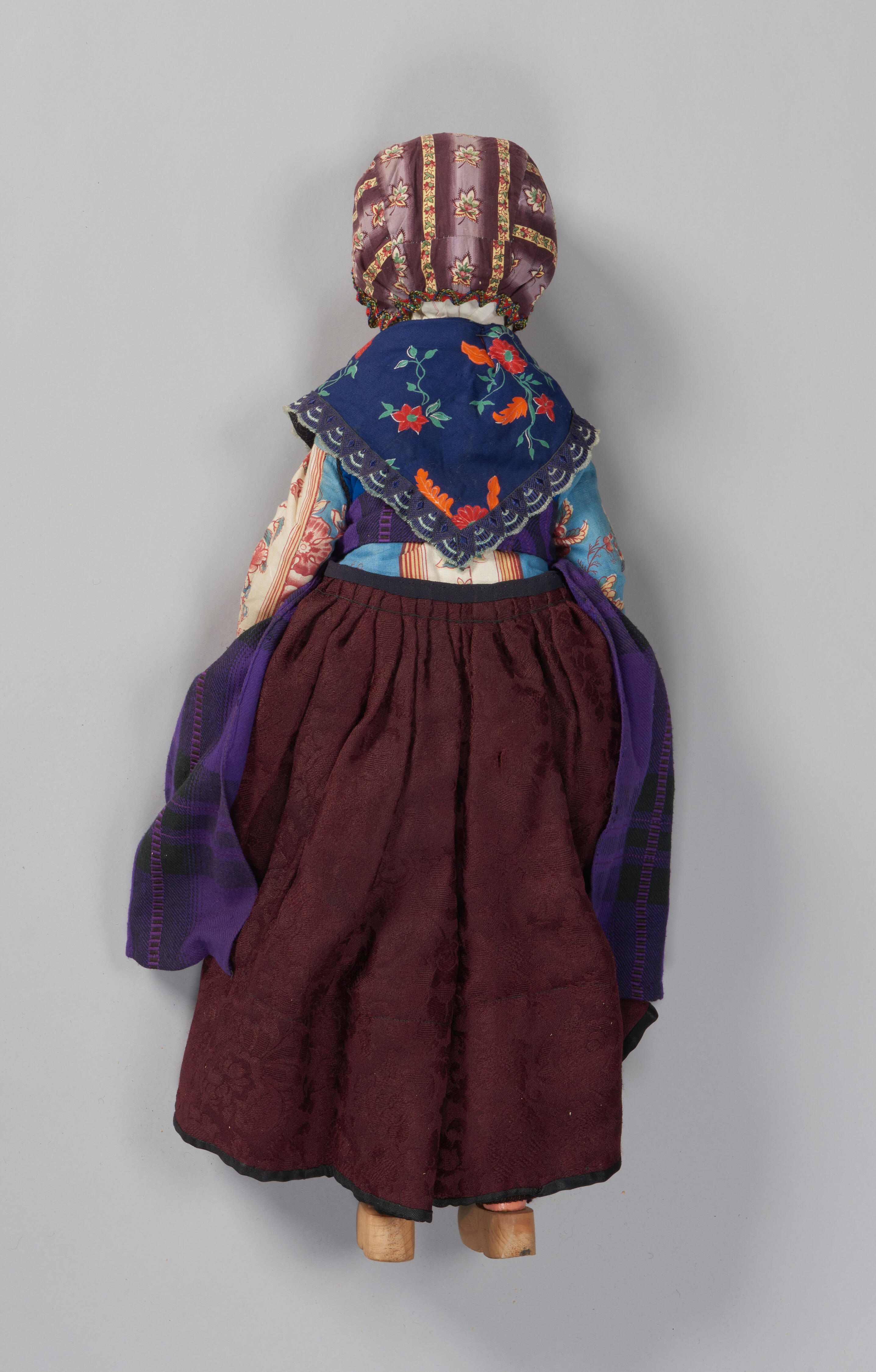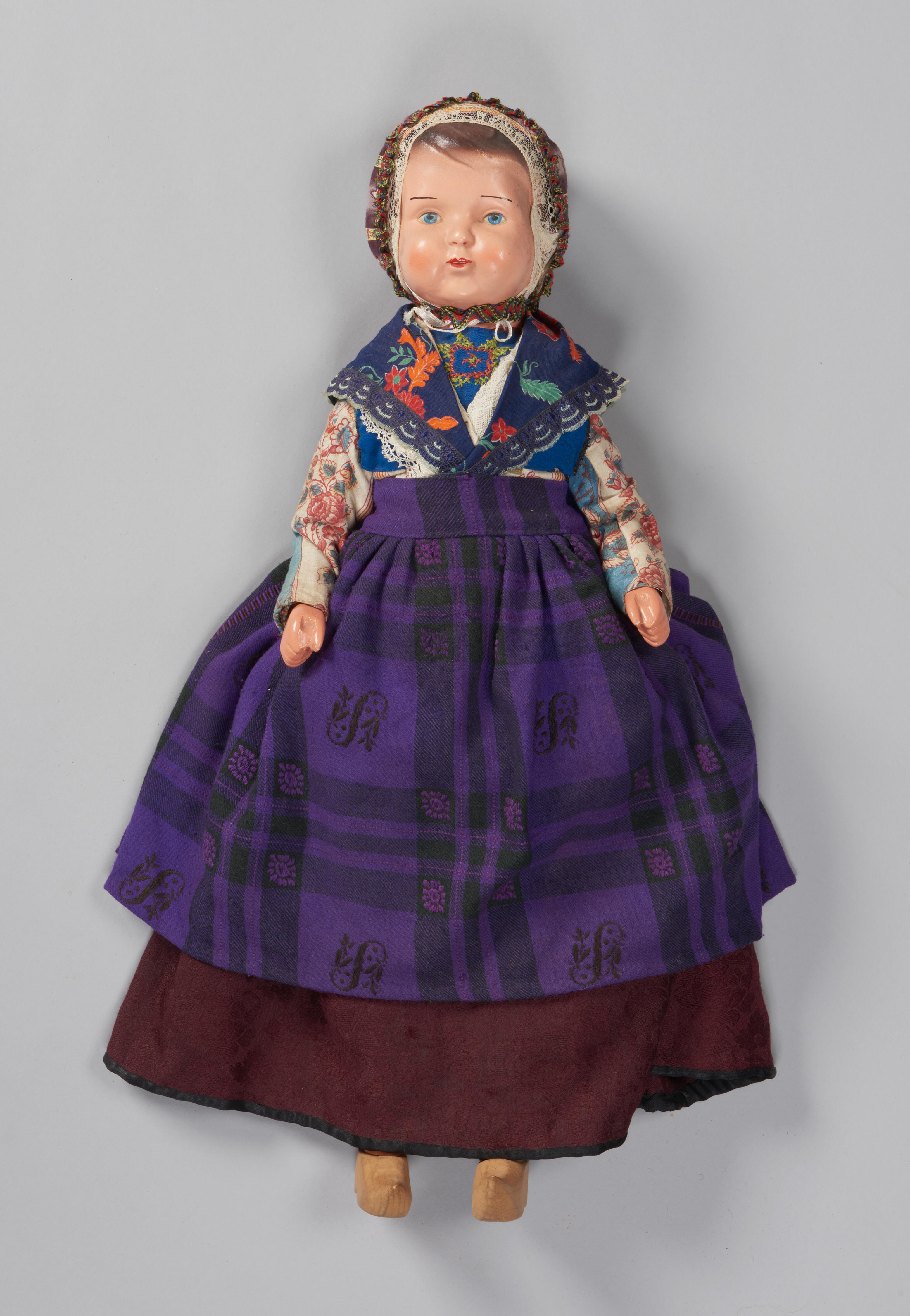 Een miniatuurpop, gekleed in negentiende-eeuwse streekdracht voor een meisje van het eiland Urk. De pop met dracht is in 1955 voor het museum samengesteld door Mariap van Urk. Het lijf, de armen en de benen zijn van hout. De kop en de handen zijn van papier-maché. De totale lengte is circa 70 centimeter.