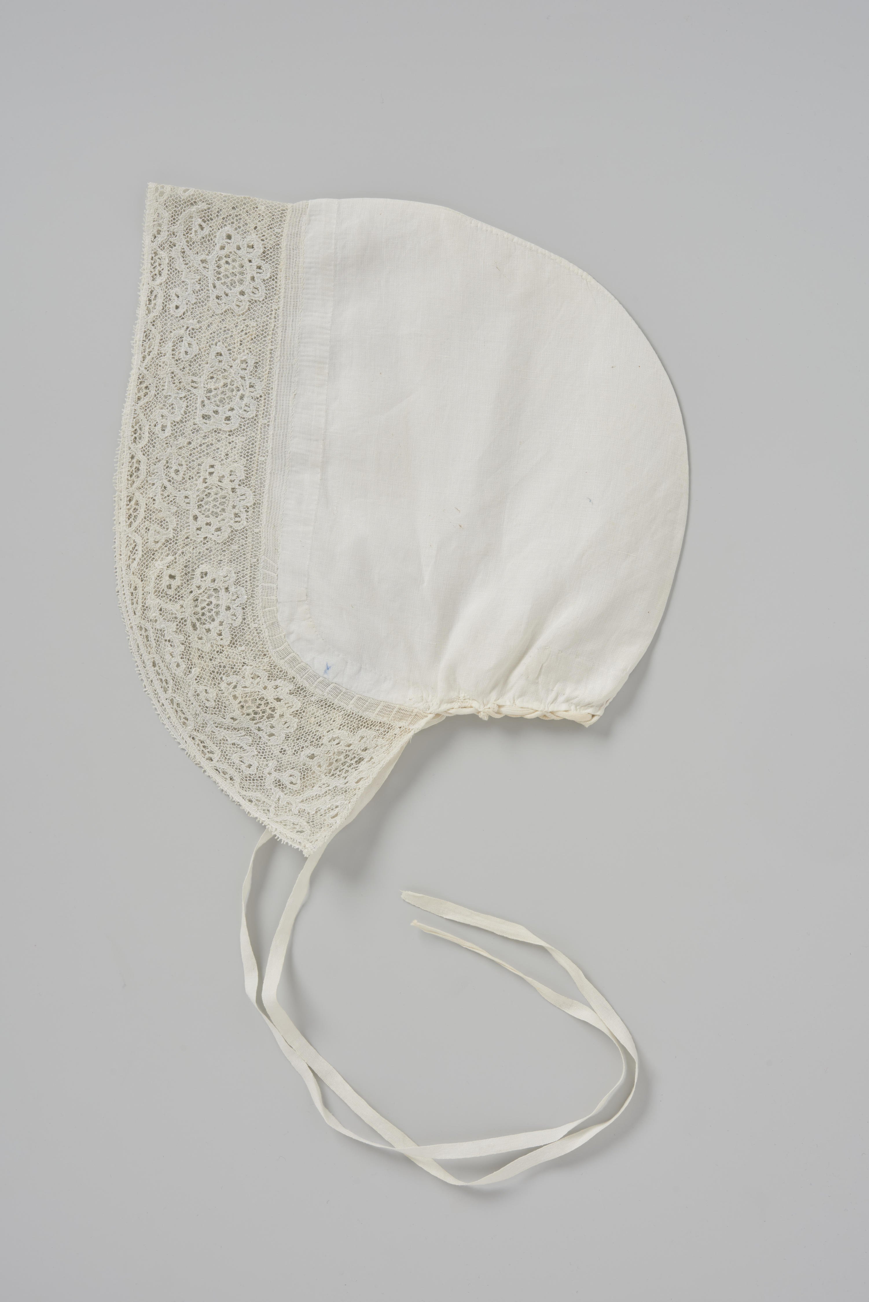 Zogenoemde 'hul' of 'neepjesmuts', gedragen door een vrouw of meisje uit Bunschoten of Spakenburg. De bol is van effen linnen of katoen. De voorstrook is van Rijselse kloskant, verbreed met een strookje mutsengaas. Onderaan, rechts van de achternaad, is de letter M (voorletter van de eigenares) geborduurd in rode kruissteekjes. Dergelijke hullen waren tot in ...