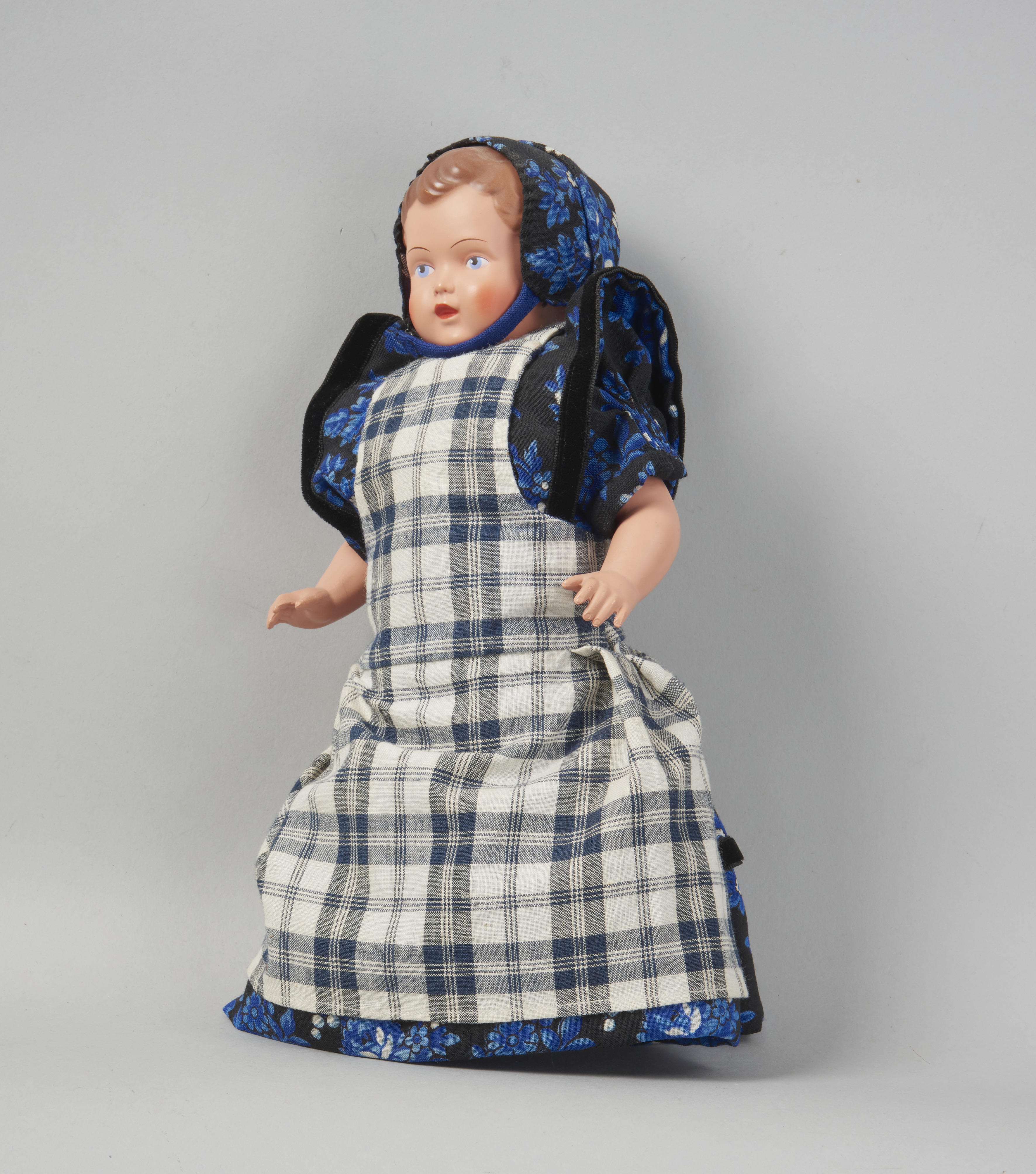 Pop, gekleed als een meisje in rouwdracht uit Bunschoten-Spakenburg.