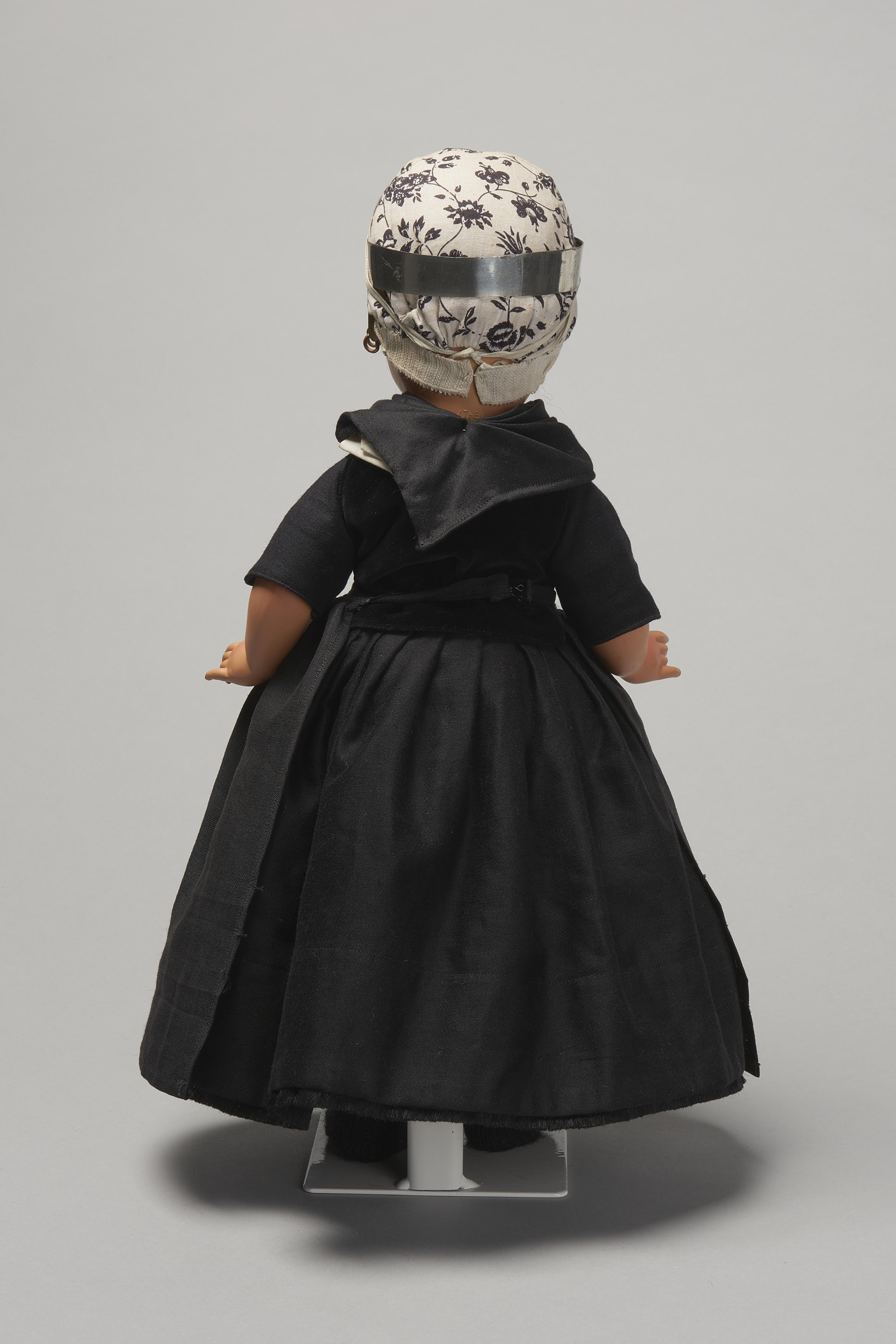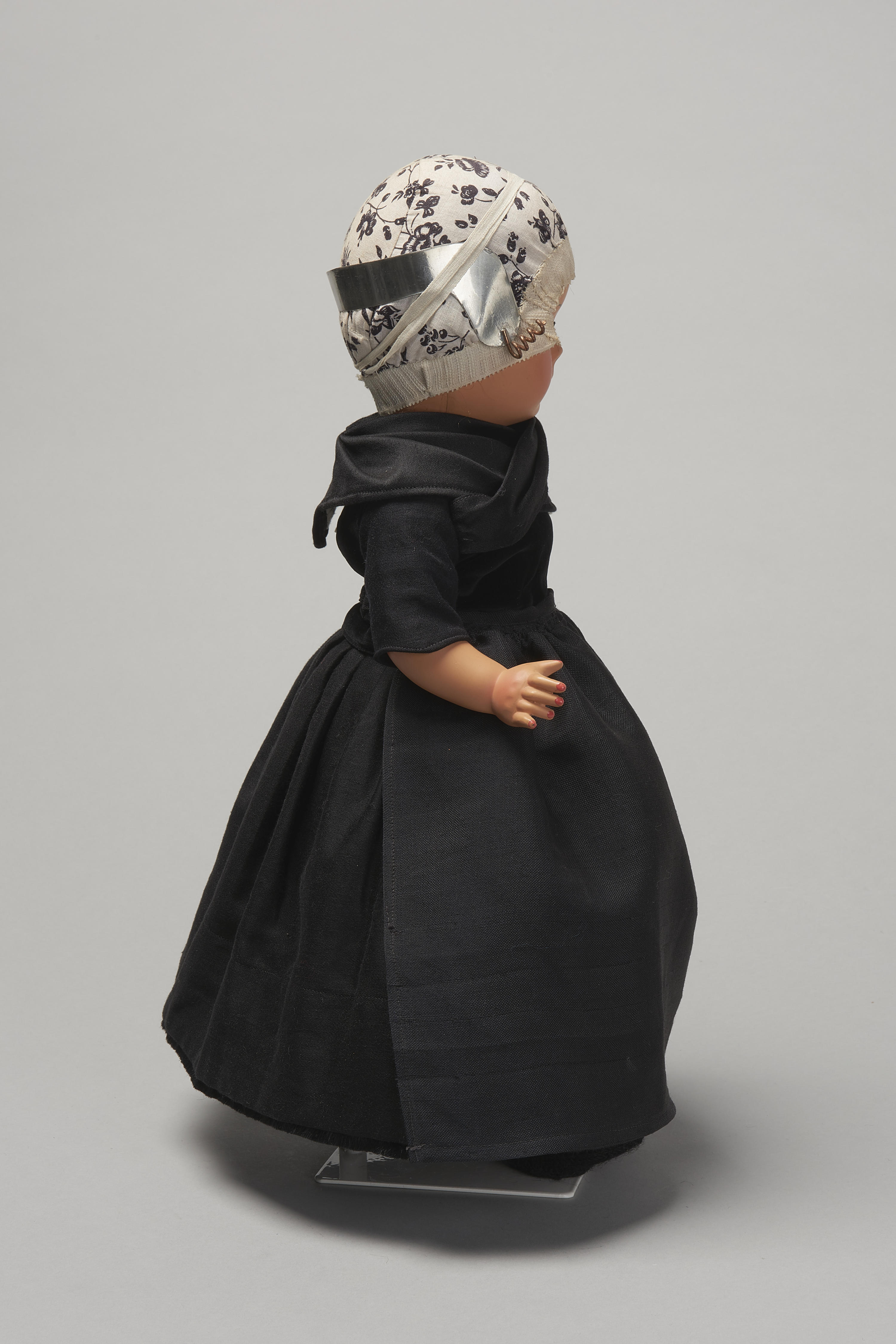 Pop, gekleed als een vrouw uit Hierden of Nunspeet. De pop draagt de doordeweekse opknapdracht voor de rouw.