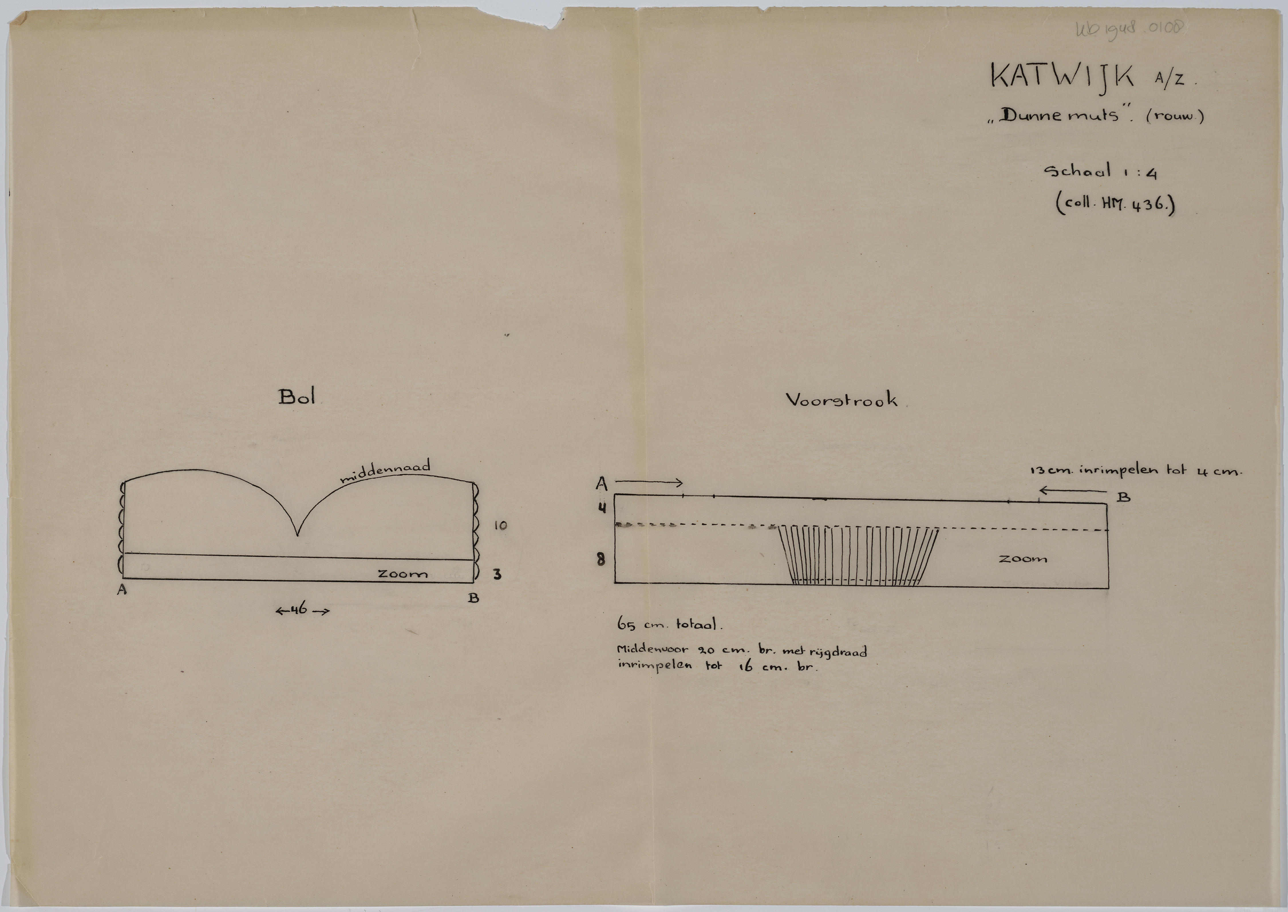 Patroontekening dunne muts (rouw), vrouw Katwijk (patroontekening)