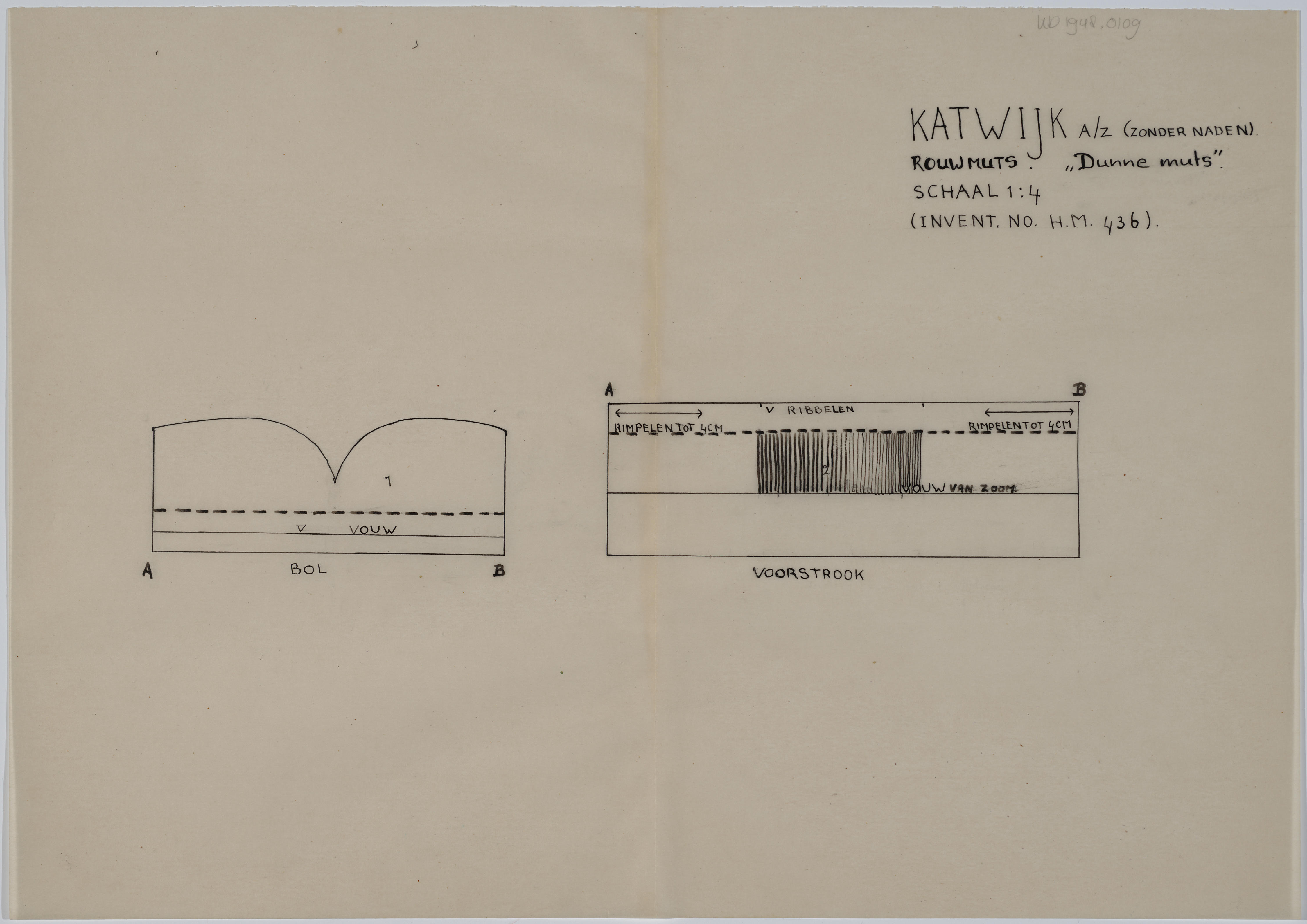 Patroontekening dunne muts (rouw), vrouw Katwijk (patroontekening)