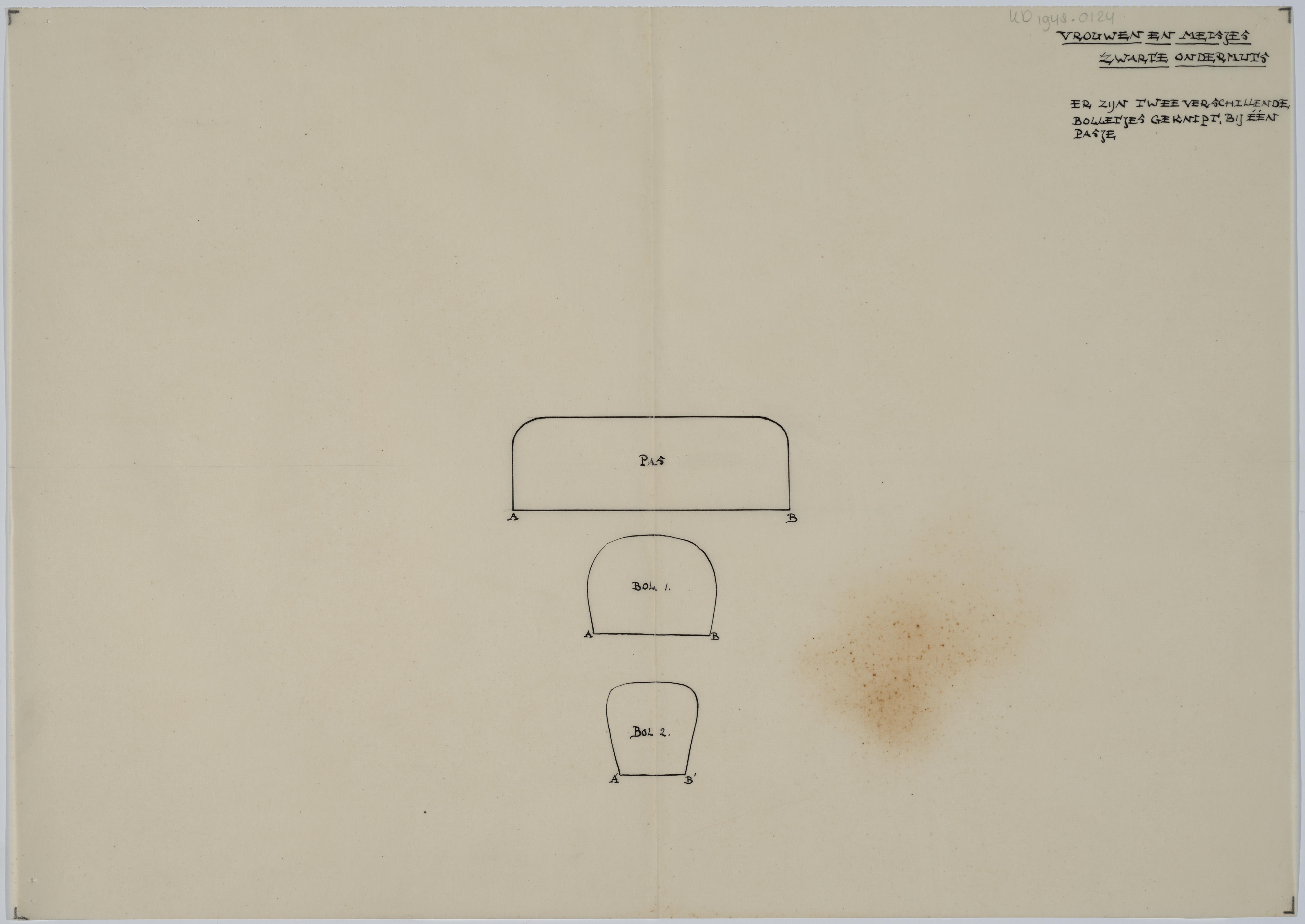 Patroontekening van een zwarte ondermuts, gedragen door vrouwen en meisjes. Schaal 1:4.