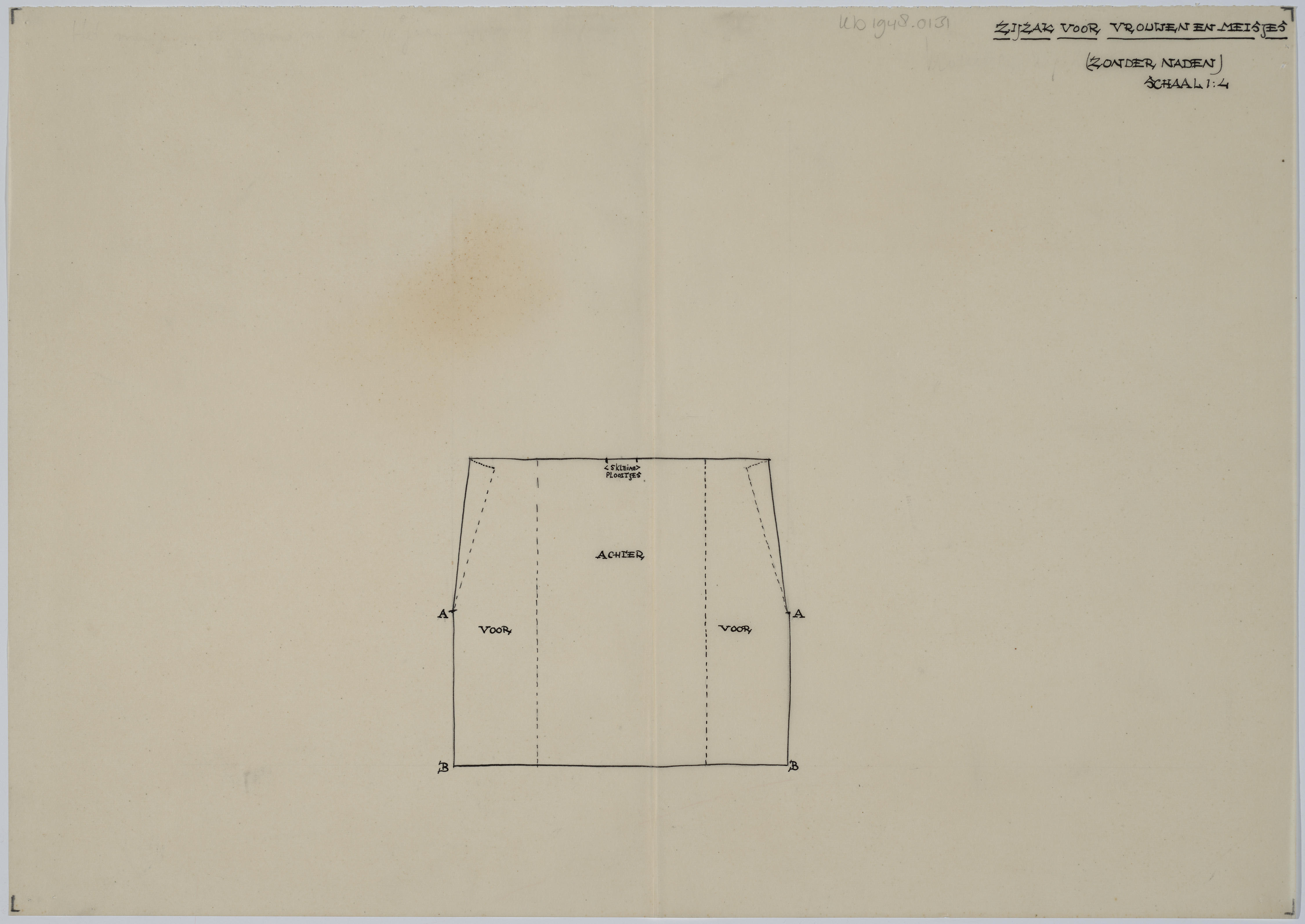 Patroontekening van een zijzak, gedragen door vrouwen en meisjes. Schaal 1:4.