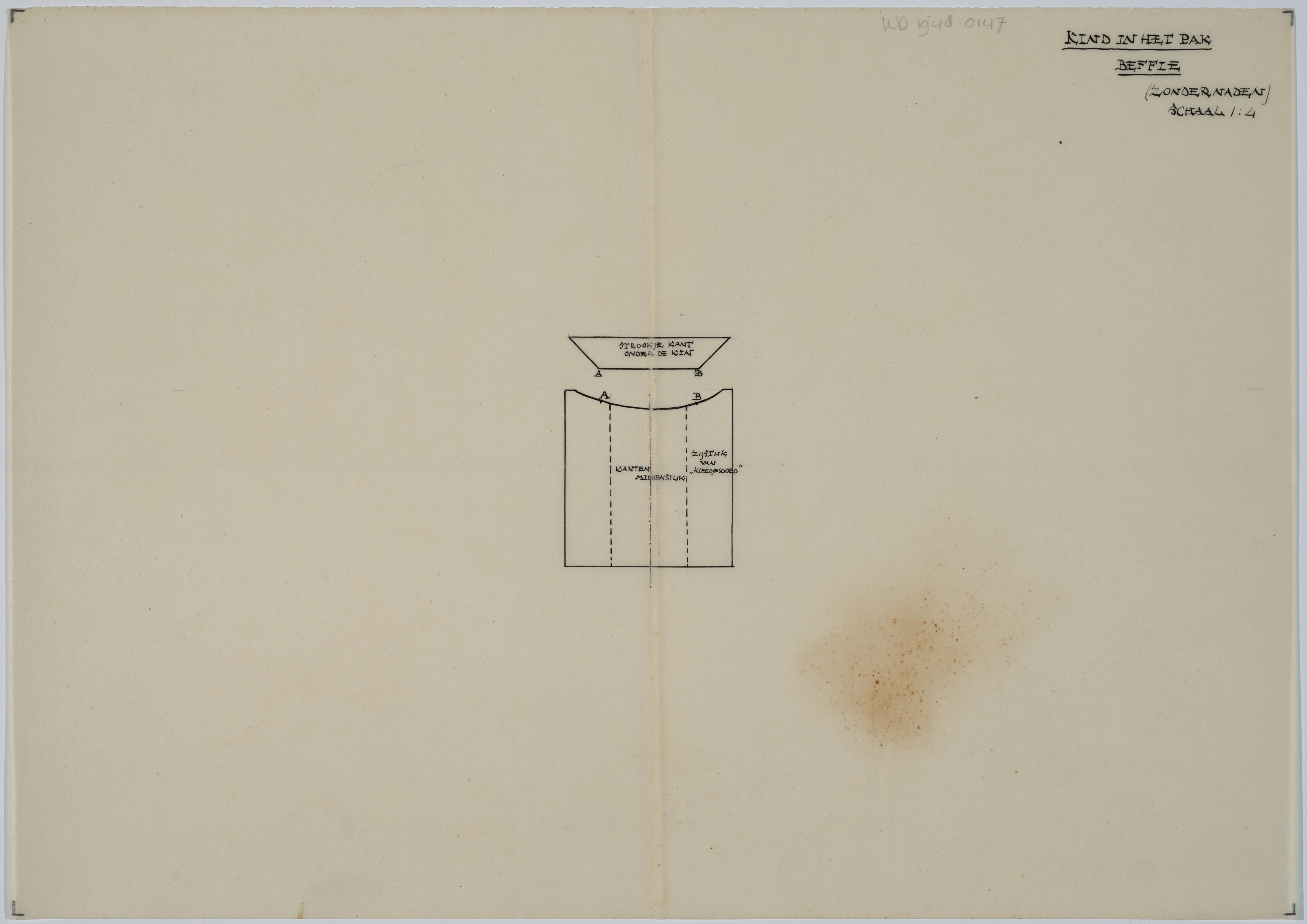 Patroontekening van een 'beffie', gedragen door een bakerkind. Schaal 1:4.