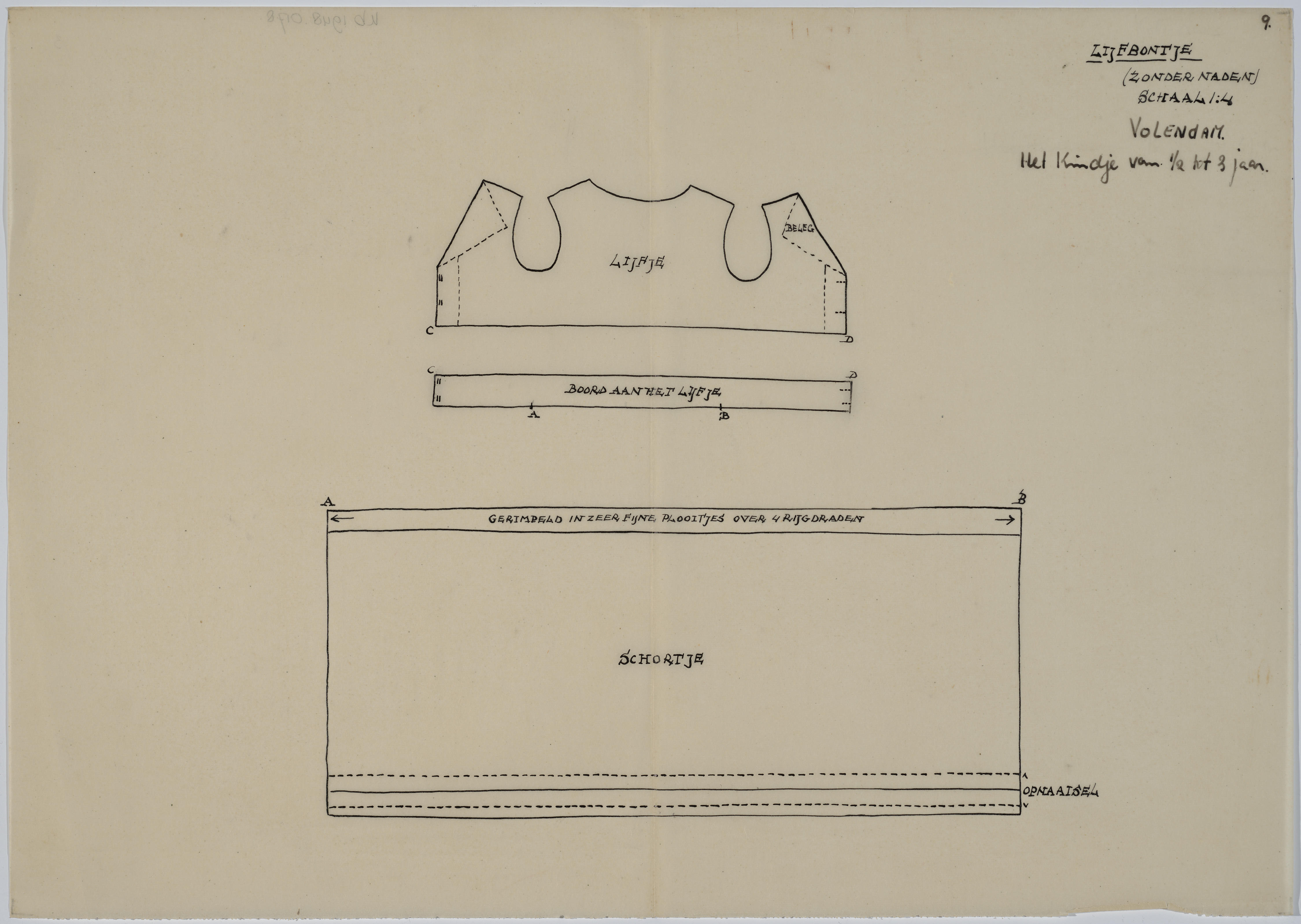 Patroontekening lijfbontje, kind Volendam (patroontekening)